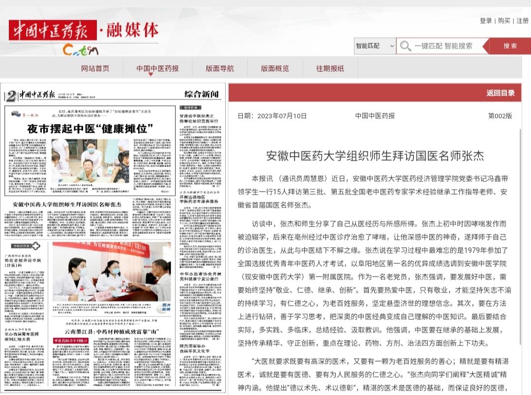 拜访国医名师张杰被《中国中医药报》报道