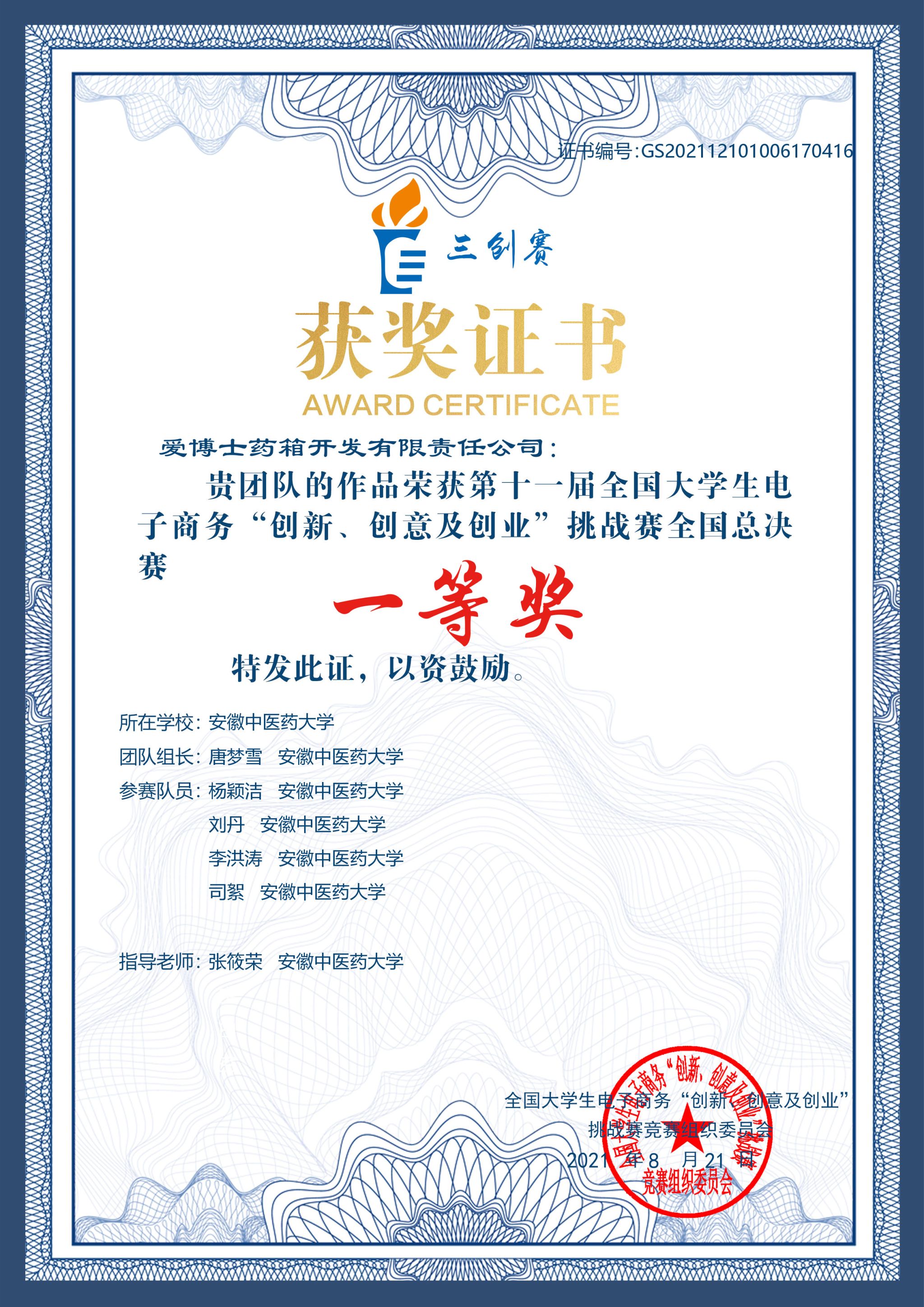 第十一届全国大学生电子商务“三创赛”挑战赛全国一等奖