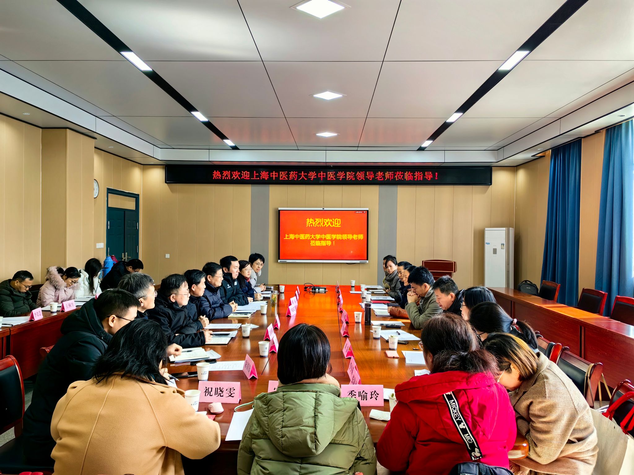 12月22日,上海中医药大学中医学院党委书记夏文芳、 院长吕嵘等一行13人到访我校交流调研,学校党委书记王琦会见了夏文芳、吕嵘一行,学校党委常委、组织部部长田磊,中医学院和中西医结合学院党政领导陪同。