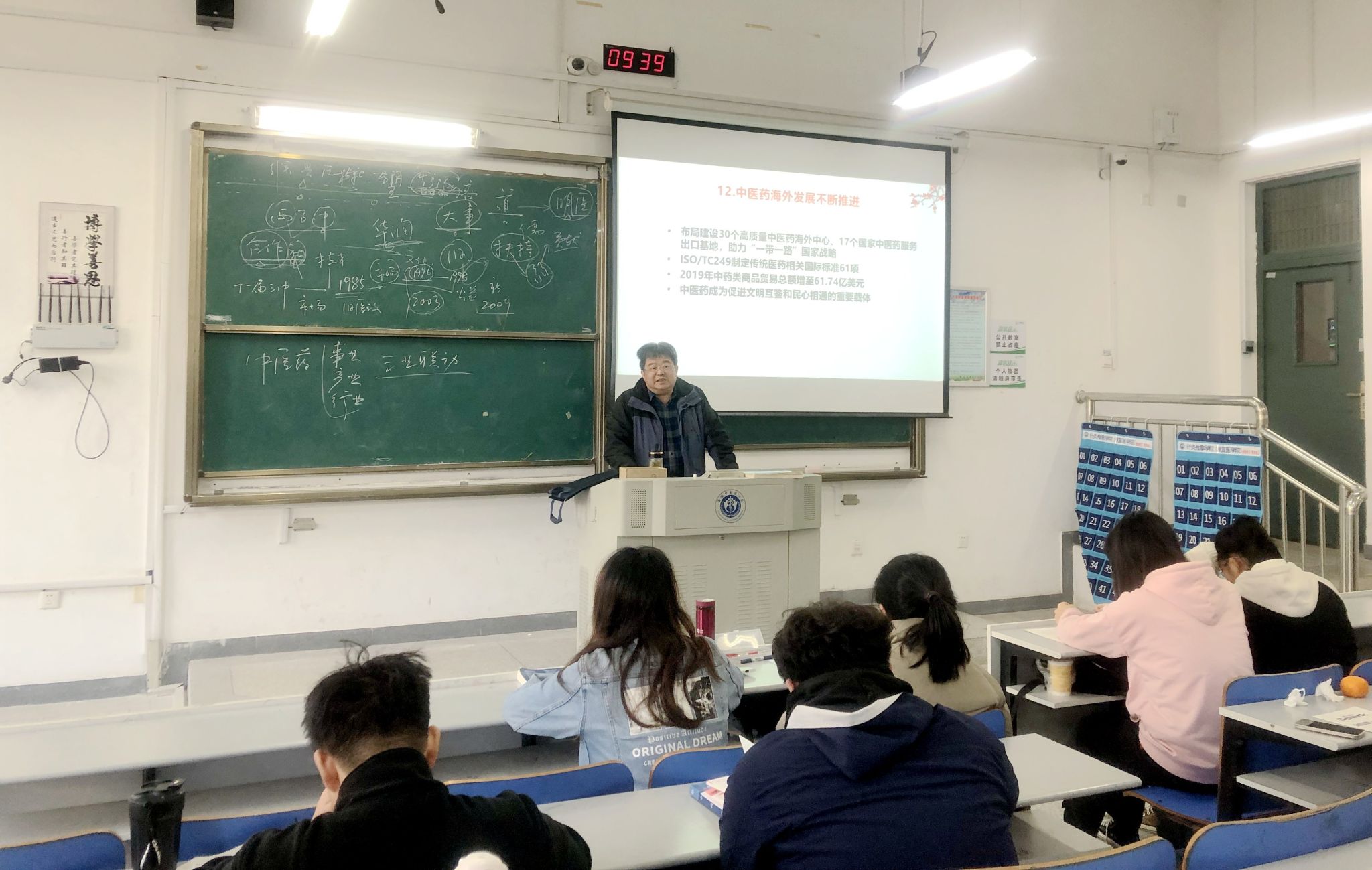 11月29日与12月5日,时任学校党委副书记、校长彭代银先后为第一临床医学院2023级中医学专业和药学院2023级药学专业学生讲授题为《中国共产党守护、传承和发展中医药》的形势与政策课。围绕“中医药学是中国古代科学的瑰宝,也是打开中华文明宝库的钥匙”这一定位,他从百年党史中讲中医药发展史,为学生讲述中国共产党关心中医药的情怀,以及如何领导中医人代代奋斗、勠力拼搏,助推与保障中医药发展与振兴。述往思来、向史而新、向史而兴,勉励大学生树立“做党的中医药人,做国家的中医药才”的奋斗目标,坚定中医药文化自信,坚定中国共产党领导下实现中医药传承创新发展的信心。授课过程中,他强调,中医药是“道”与“术”的统一,要正确处理“道”与“术”的关系,既要学好科学文化知识,更要学会做人、做事的道理,努力在服务人民健康上贡献自己的力量。
