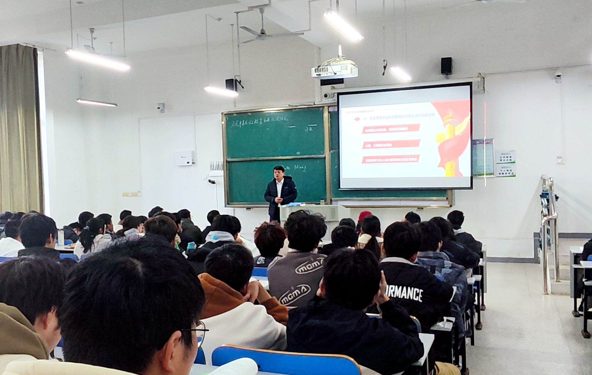为深入贯彻落实《关于深化新时代学校思想政治理论课改革创新的若干意见》《普通高等学校马克思主义学院建设标准(2023)》《中共安徽省委教育工委关于进一步推进领导干部上讲台开展思想政治教育工作的通知》等文件精神,进一步推进“形势与政策”课建设,根据本学期教学安排,近期,全体校领导深入课堂和学生一线,面向不同学院、不同专业的学生讲授“形势与政策”课。