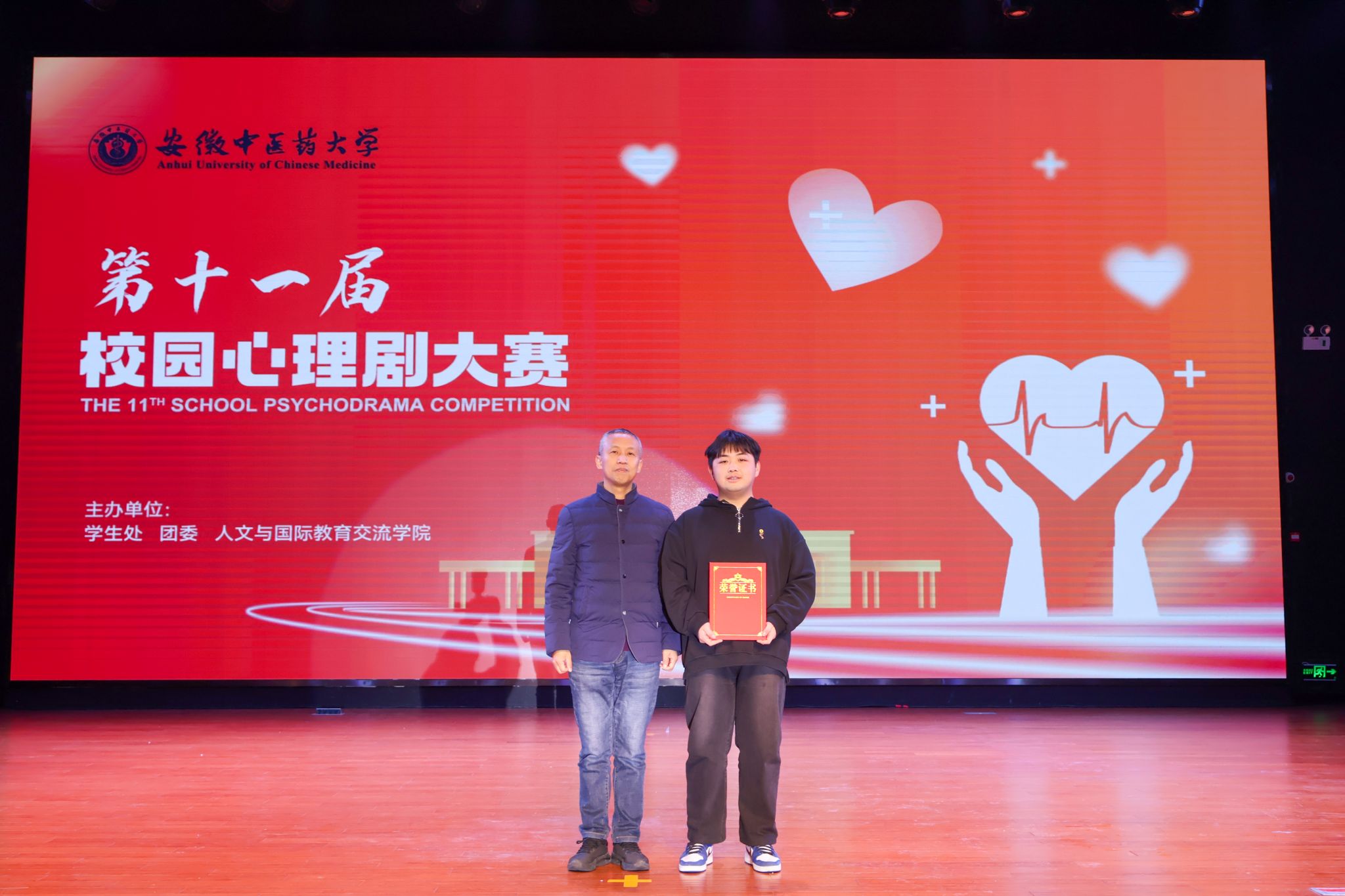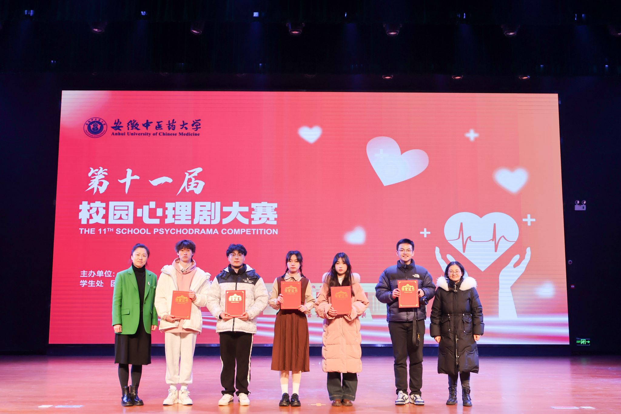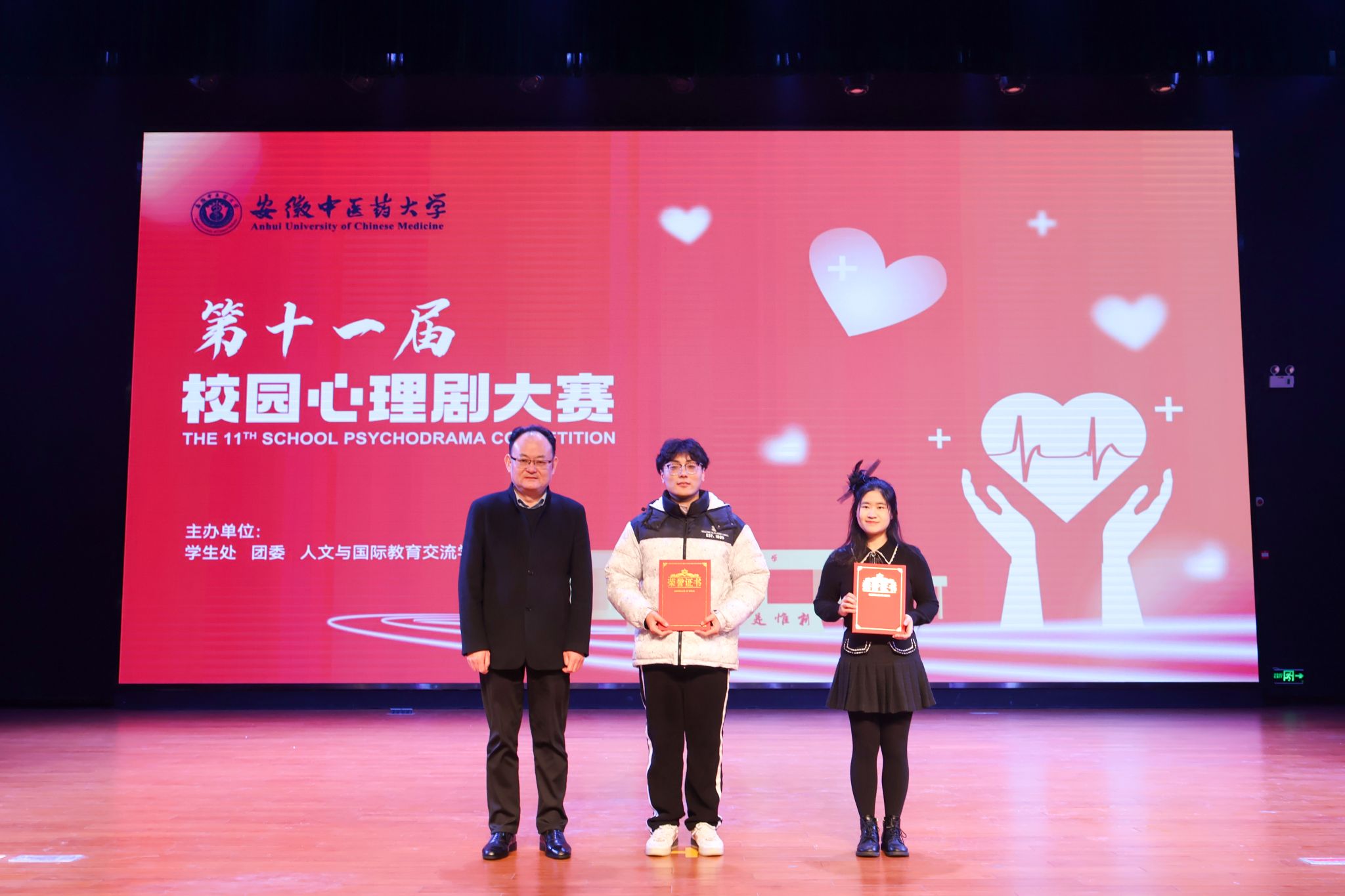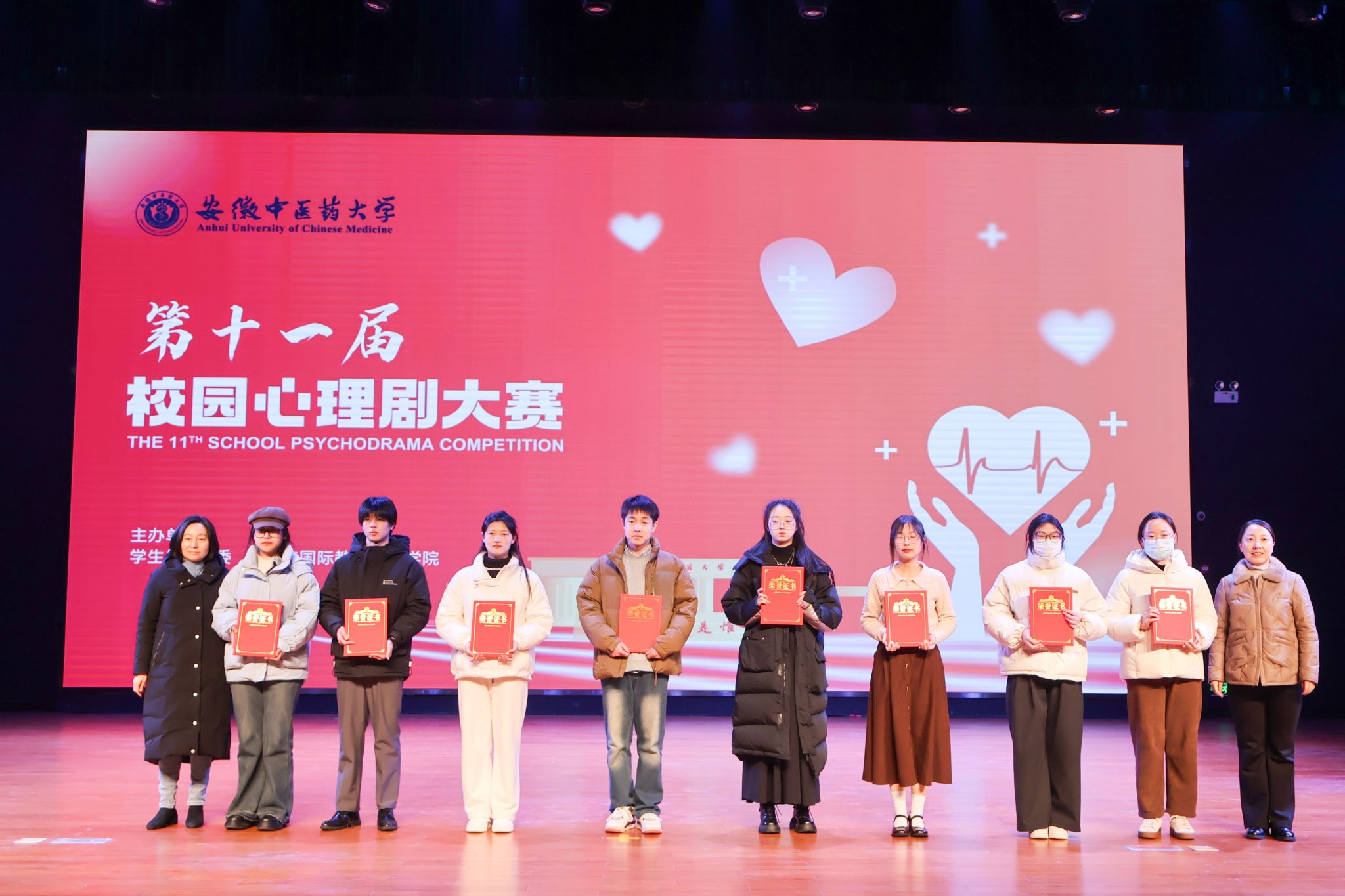 为营造温暖和谐的校园心理健康环境,进一步丰富大学生心理健康教育实践活动内涵,按照学校《2023年下半年“大学生心理健康教育活动月”活动方案》,12月19日,由学校学生处、校团委与人文与国际教育交流学院联合主办的“安徽中医药大学第十一届校园心理剧大赛”在少荃湖校区举行。