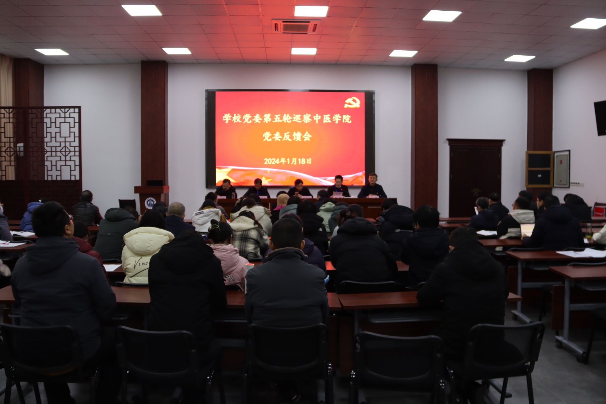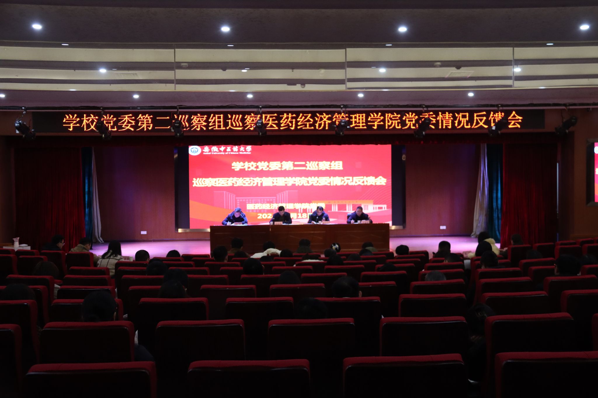 根据校党委统一部署,2024年1月18日下午,二届学校党委第五轮巡察中医学院党委、医院经济管理学院党委情况反馈会分别举行。校党委常委、党委巡察工作领导小组成员、巡察办主任、机关党委书记罗绍明,校纪委副书记、党委巡察工作领导小组成员、校纪委副书记、纪委办公室主任姚为久分别出席相关反馈会,校党委第一巡察组组长李舰、第二巡察组组长黄学武代表党委反馈了巡察情况,被巡察单位党组织主要负责人作表态发言。