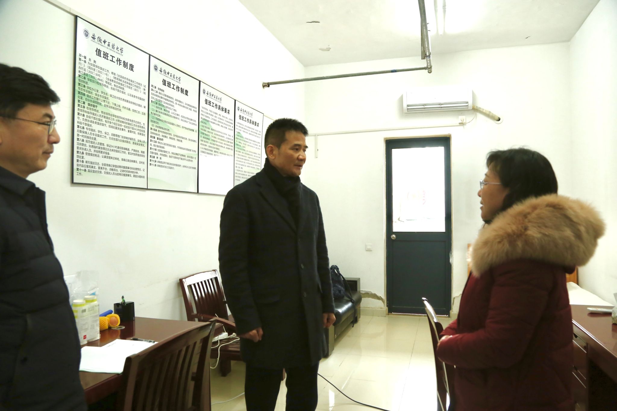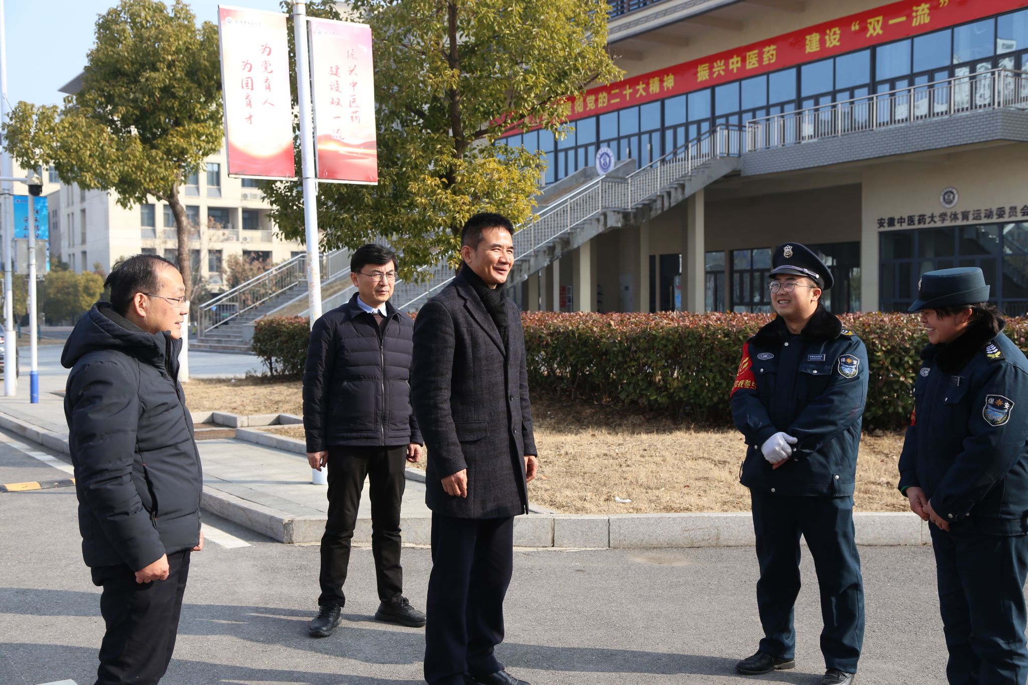 在少荃湖校区,王琦先后走访门卫值班室、学生公寓、食堂、学校总值班室等地,看望坚守工作岗位的安保、后勤、学生公寓等工作人员,详细了解春节期间工作安排、值班等情况,向他们表示慰问。王琦对过去一年大家为保障校园正常运转作出的贡献以及春节期间仍坚守岗位的奉献精神表示感谢,希望大家做好寒假各项服务保障工作,确保师生度过一个欢乐祥和的新春佳节。
