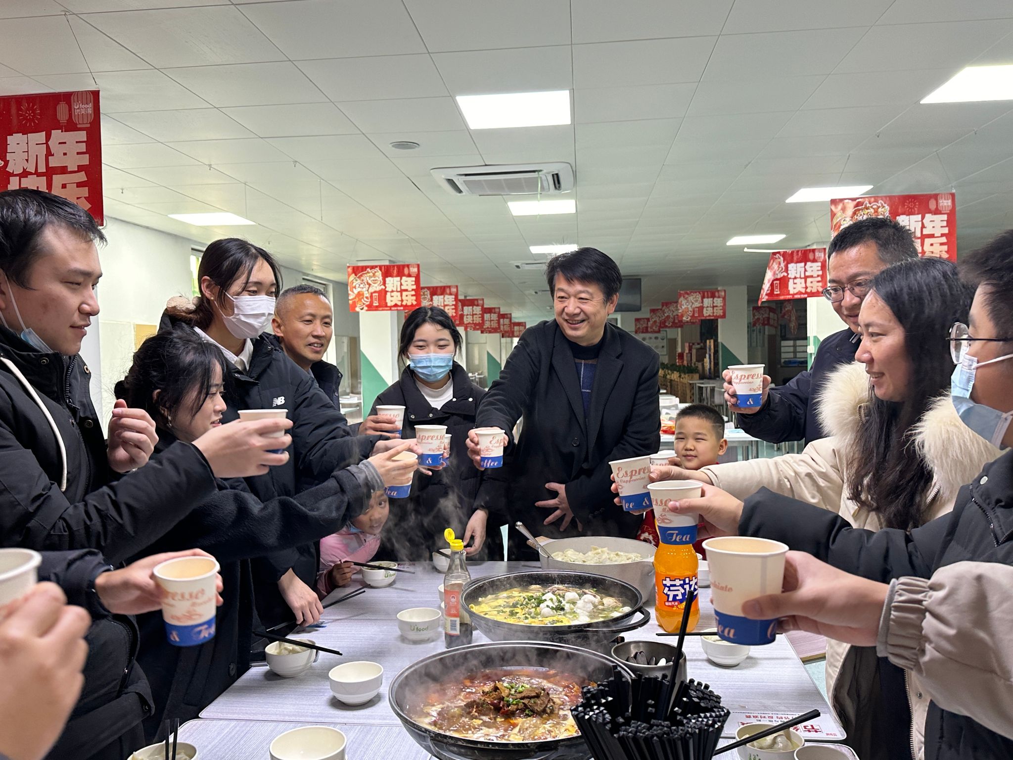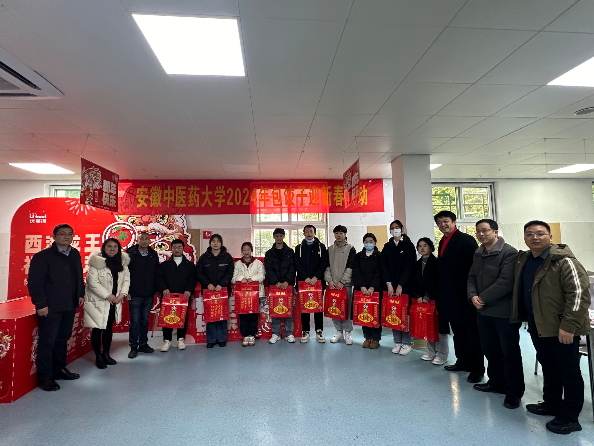 2月9日下午,学校在第一临床医学院膳食楼食堂共同举办了一场温馨而别致的“包饺子·迎新春”活动,校党委常委、第一临床医学院党委书记聂久胜,学生处处长冯祥,第一临床医学院党委副书记宋婷婷、副院长沈安鲁等多位领导老师与数十位学生齐聚一堂,共同欢度新年这个特殊时刻。活动由学生处主办,第一临床医学院承办,给春节期间值班值守在临床岗位上的多个学院的学生带去节日的关心和问候。