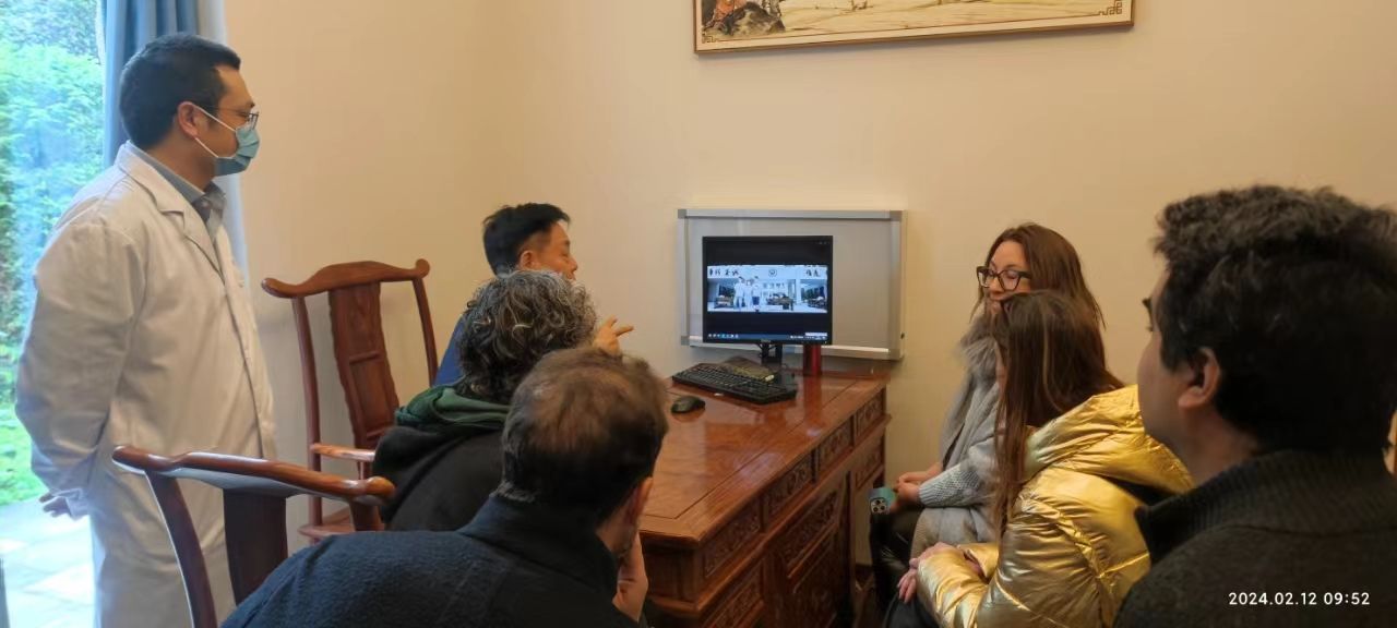 雅典中医药中心负责人向客人介绍了中医理论的哲学思想、中医的起源和中医博大精深的理论和实践体系,着重介绍了雅典中医药中心服务希腊社会的体会和中、西医相互借鉴、合作发展对服务于人类健康的重要性。并借助短视频详细介绍了安徽中医药大学在学科建设、培养人才方面的发展和建树。