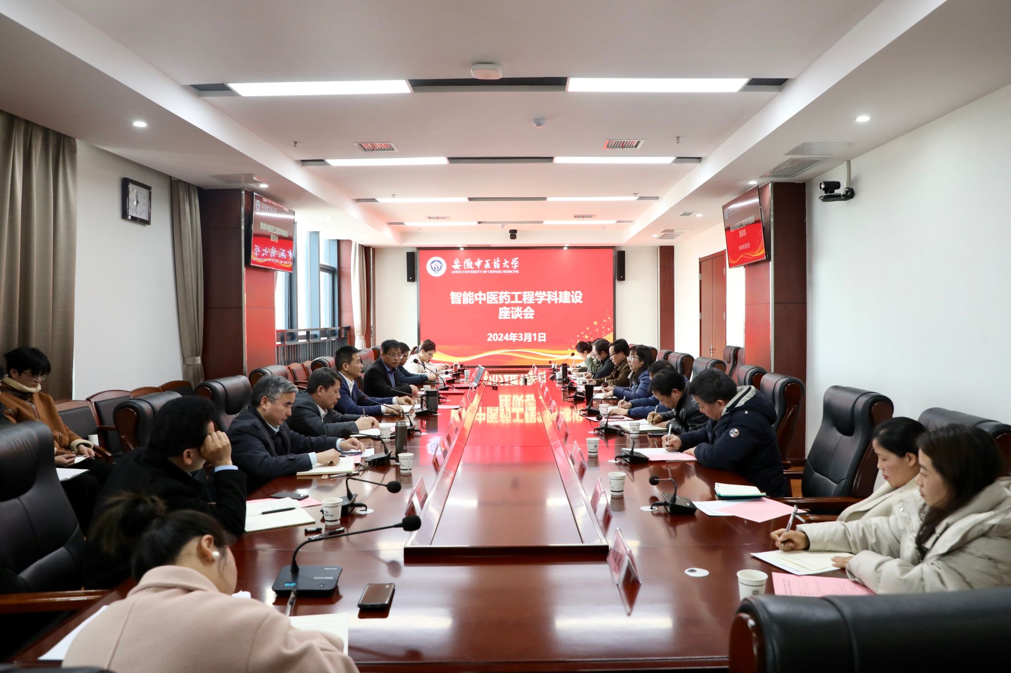 为学习贯彻全国教育工作会议精神,贯彻落实《安徽省高等学校高峰学科建设五年规划(2020-2024年)》《安徽省教育厅关于立项建设高峰培育学科的通知》文件精神,加快推进智能中医药工程学科建设,3月1日上午,学校召开智能中医药工程学科建设专题座谈会。校党委书记王琦出席会议并讲话,校党委常委、副校长许钒,福建理工大学陈德旺教授,学校部分职能部门主要负责人,医药信息工程学院领导班子、学科骨干、教师代表等参加座谈会。会议由许钒主持。