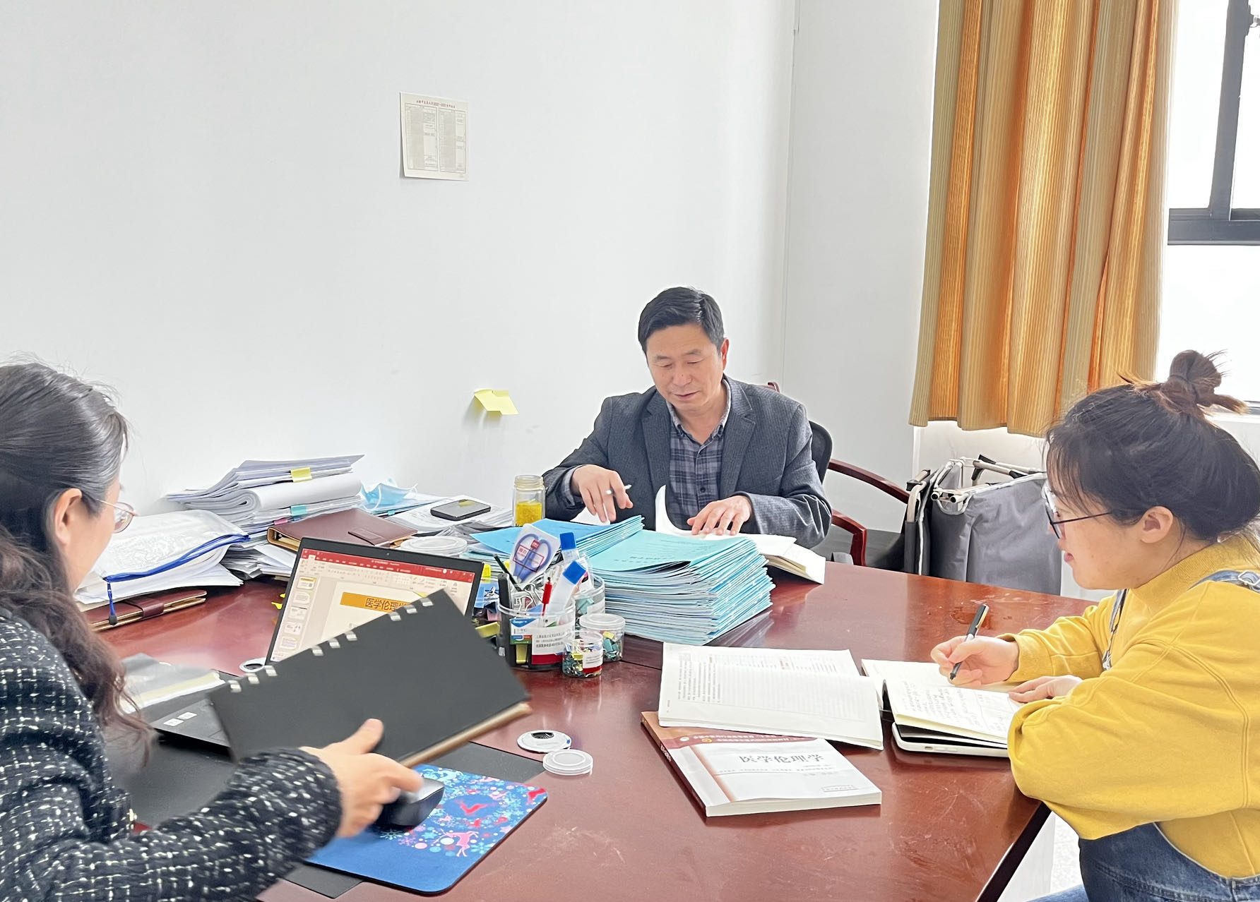 尤吾兵长期从事思想政治教育、生命伦理的教科研工作,主要承担《新时代中国特色社会主义理论与实践》《思想政治理论实践课》《医学伦理学》等课程的教学。习近平总书记在学校思想政治理论课教师座谈会上曾提出:“办好思想政治理论课,最根本的是要全面贯彻党的教育方针,解决好培养什么人、怎样培养人、为谁培养人这个根本问题。”尤吾兵在教学中能够深刻认识到所授学科的重要性,始终以“立德树人”为育人目标,以培养“德艺双馨”的医学实践者为己任,尽力为学校思政课教学和医学人文教育发展服务。教学中重点围绕立德树人和培育践行社会主义核心价值观的总体要求,聚焦医学职业精神教育领域中突出问题,遵循思想道德培养“知、情、意、行”发展规律,将“思政理论课教学”与“医学生职业精神教育”有机结合,把社会主义核心价值观“润物细无声”融入课堂教学、学生实习、规培、临床等全部育人环节中,引导医学生把社会主义核心价值观作为职业精神提升的指南,思政教育效果明显提升。藉此,尤吾兵执笔申报“知、情、意、行”医学人文素质教育模式,使我校成为教育部高等学校医学人文素质教育基地。