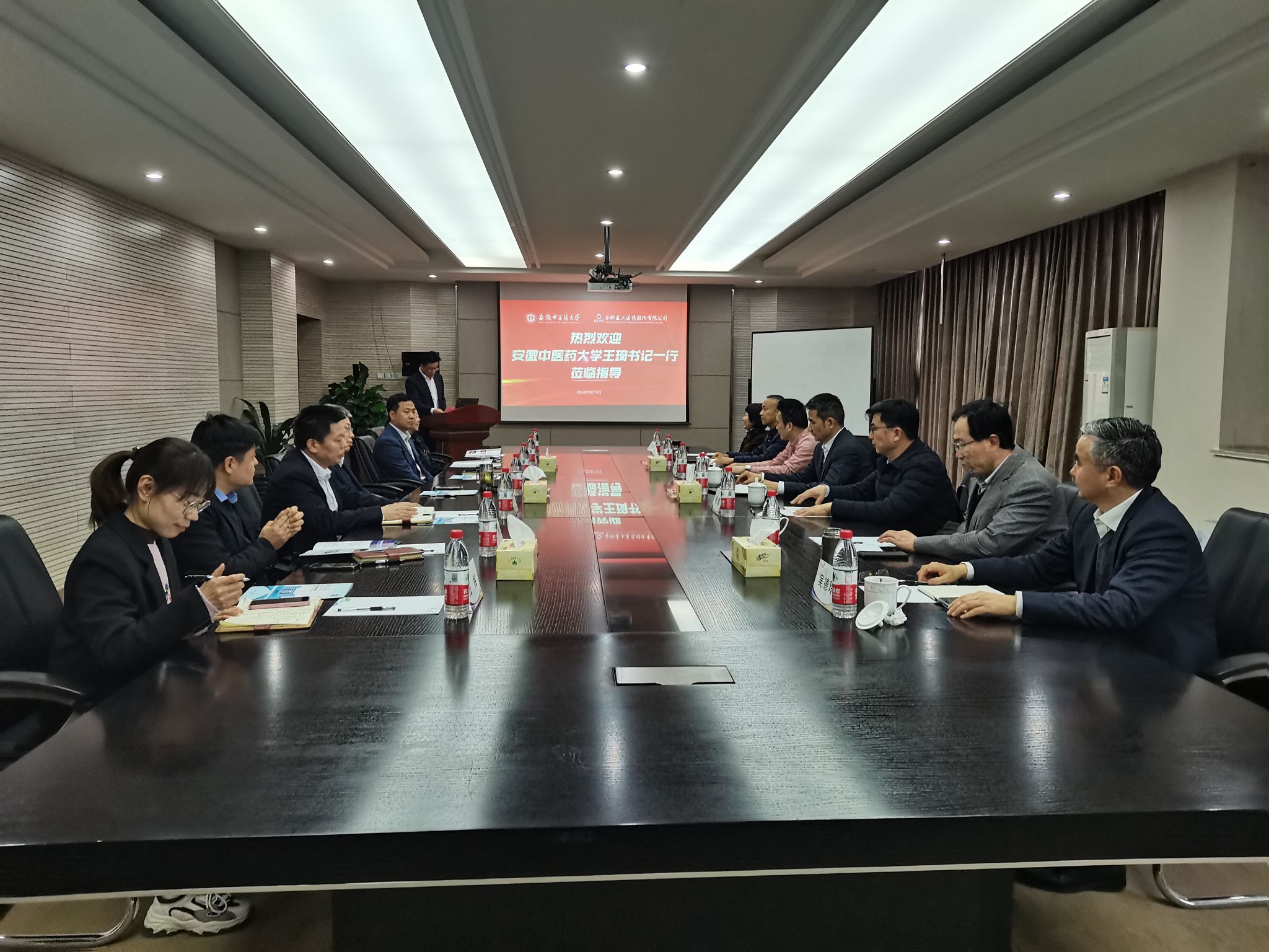 王琦对合肥医工的热情接待以及长期以来对学校事业发展的关心支持表示感谢,对合肥医工自主创新发展理念、研发投入多、发展潜力大、多个项目入选国家重大新药创制科技重大专项及安徽省中医药科技攻关专项所取得的成绩给予充分肯定。他指出,学校当前紧紧围绕“振兴中医药 建设‘双一流’”关键目标,聚焦高质量发展,希望校企双方进一步加强合作,充分发挥中医药专业资源优势、人才优势,搭建更广泛、更精准的合作平台,共同培养更多优秀人才,共同为守护人民健康贡献力量。