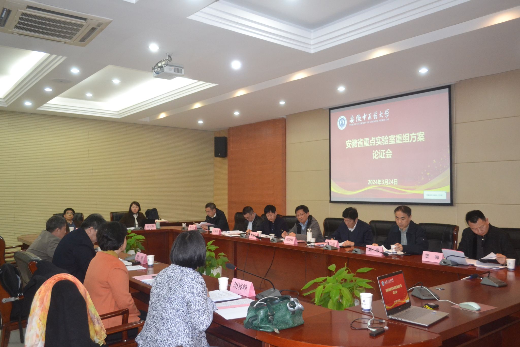 3月24日下午,我校于新安楼一楼会议室召开安徽省重点实验室重组方案专家论证会。本次会议邀请了安徽省科技厅基地处一级调研员周晓辉、安徽医科大学徐德祥教授、中国科学技术大学生命科学院刘强教授、中国科学技术大学第一附属医院王嘉倍教授、安徽省高新技术发展中心费帅主任及我校彭代银教授、周美启教授担任论证专家。校领导戴敏、魏骅、许钒及各安徽省重点实验室负责人参会,会议由安徽省中医药科学院综合办公室副主任胡容峰主持。