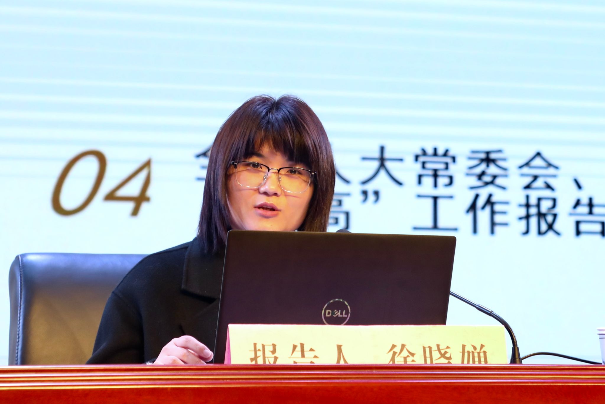 徐晓婵从“大会基本情况”“政府工作报告和计划、预算报告”“修改国务院组织法”“全国人大常委会、‘两高’工作报告”四个方面进行深入宣讲,传达学习习近平总书记在全国两会期间的重要讲话精神,介绍《政府工作报告》等大会重要成果,并分享自己参会履职的深切体会和感受。