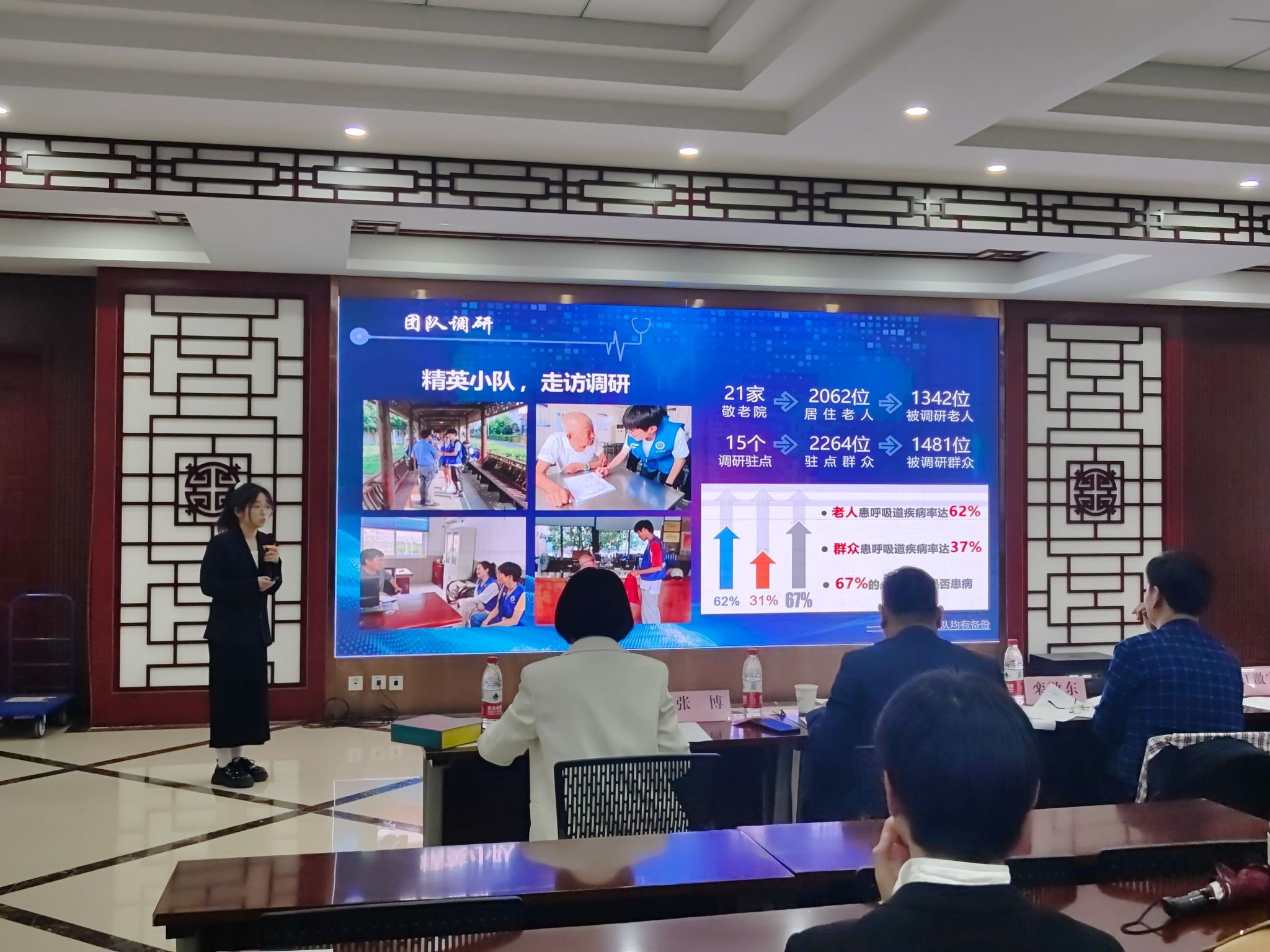 经过前期评选,本次比赛共有14支常规赛道队伍,4支实战赛道队伍成功入围校赛终极赛。在现场项目展示环节中,各团队负责人展示了项目构思的起因、项目实施背景、项目的发展进度、项目优势、运营发展情况和取得成就等内容。