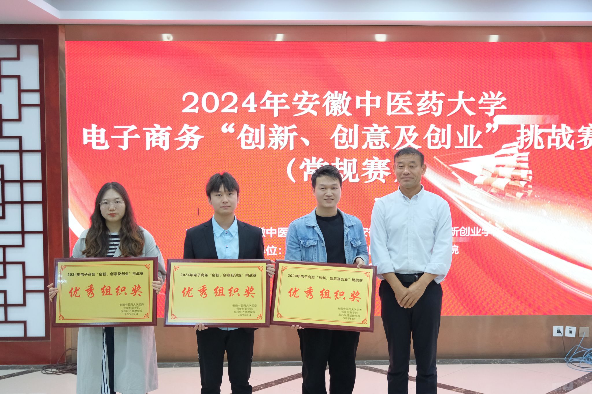 本次决赛最终从91支复赛团队中遴选出一等奖9个,二等奖18个,三等奖28个,优秀奖36个,最佳创新奖1项,最佳创意奖1项,最佳创业奖1项。根据组织报名参赛情况,医药信息工程学院、中西医结合学院和医药经济管理学院获得“优秀组织奖”(详见附件)。