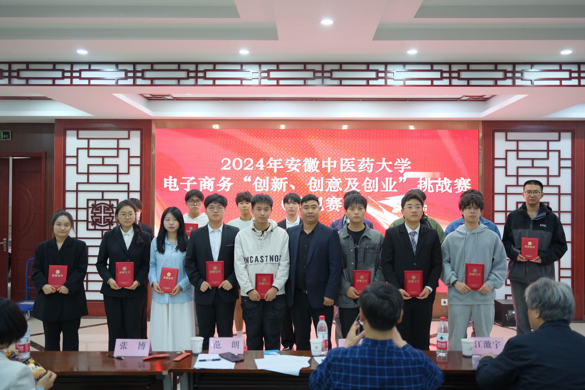 本次比赛分为常规赛道和实战赛道,安徽农业大学教授、博士生导师、乡村振兴战略研究院副院长栾敬东教授,安徽农业大学教授、博士生导师、安徽农业现代化研究院首席专家江激宇教授,我校青年创业校友会副秘书长、安徽省中医药现代化研究学会副秘书长、合肥华润三九医药有限公司范朗老师,创新创业学院副院长(正处级)吴臣军老师,医药经济管理学院党委副书记张博老师,创新创业学院副教授沈同平老师,创新创业学院综合科科长季冬阳老师,台州博之锐生物制药有限公司汪成志老师担任本次比赛评委。