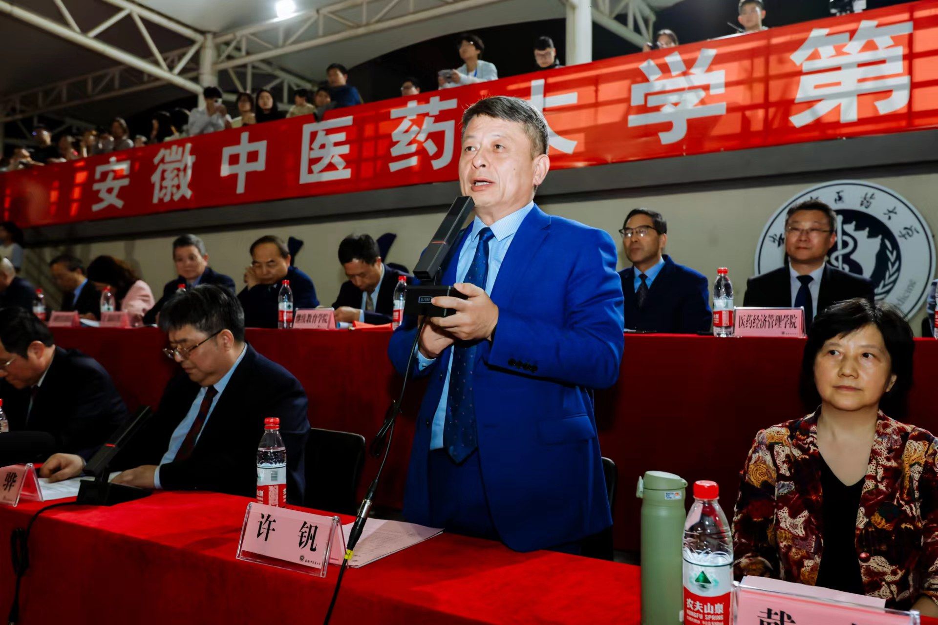 学校副校长、体育运动委员会主任戴敏致开幕词。她表示,每年一度的春季运动会是安徽中医药大学体育生活的重要组成部分,也是学校体育工作的一次大检阅,更是广大师生精神面貌和综合素质的一次集中展示。她希望,参加本届运动会的全体运动健儿和工作人员,满怀昂扬斗志,发挥最佳状态,展示“更高、更快、更强”的体育精神,和“公开、公正、公平”的体育原则,真正把此次运动会办成一届团结、文明、公正、精彩、安全、有序的体育盛会。