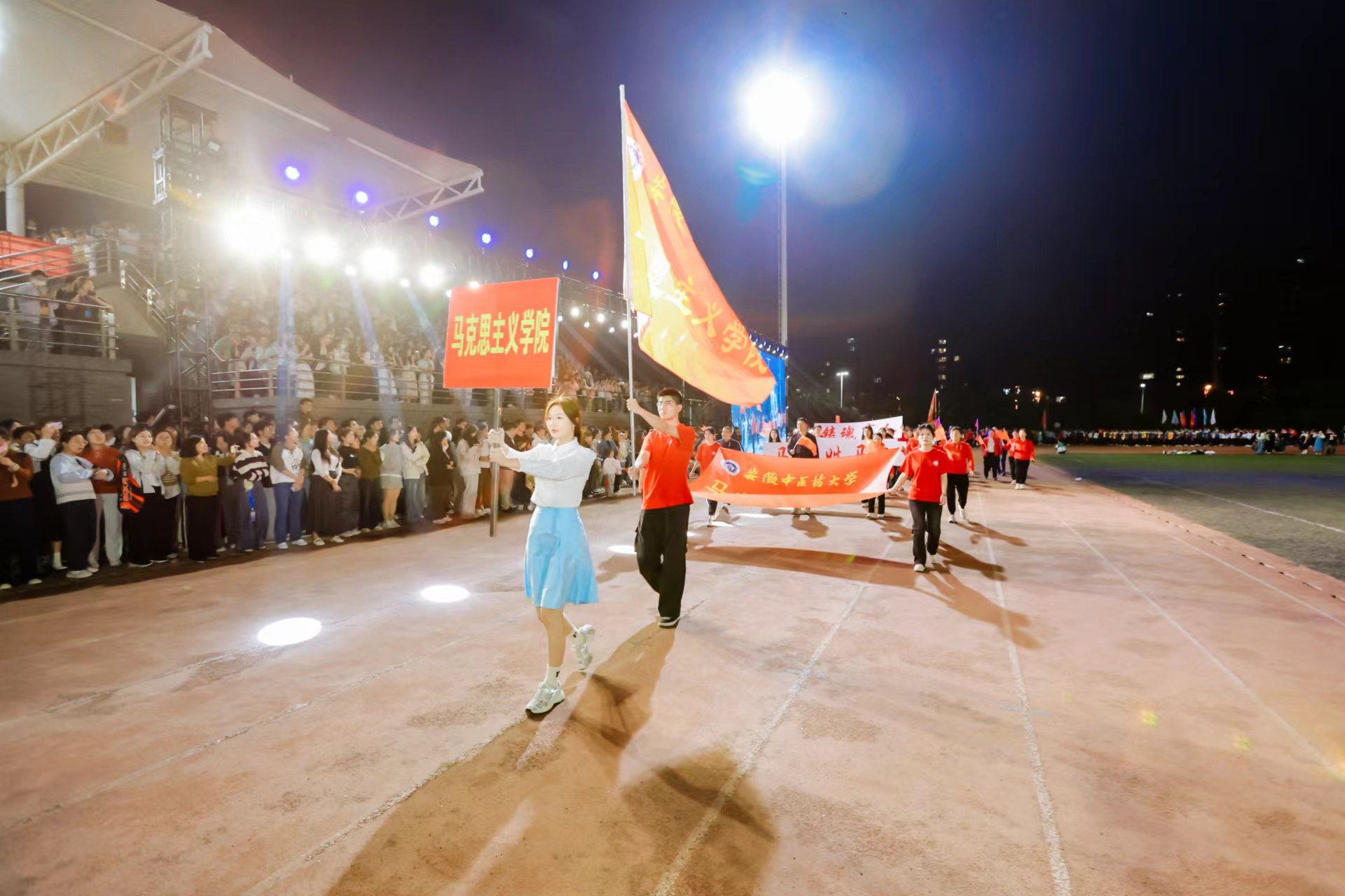 党委常委、副校长魏骅主持开幕式。国旗护卫队迈着坚定的步伐,走在检阅队伍的最前方,庄严护送国旗入场。各单位方阵依次通过主席台接受检阅,整齐划一的队形、振奋响亮的口号,展现出安中人的激情与活力。