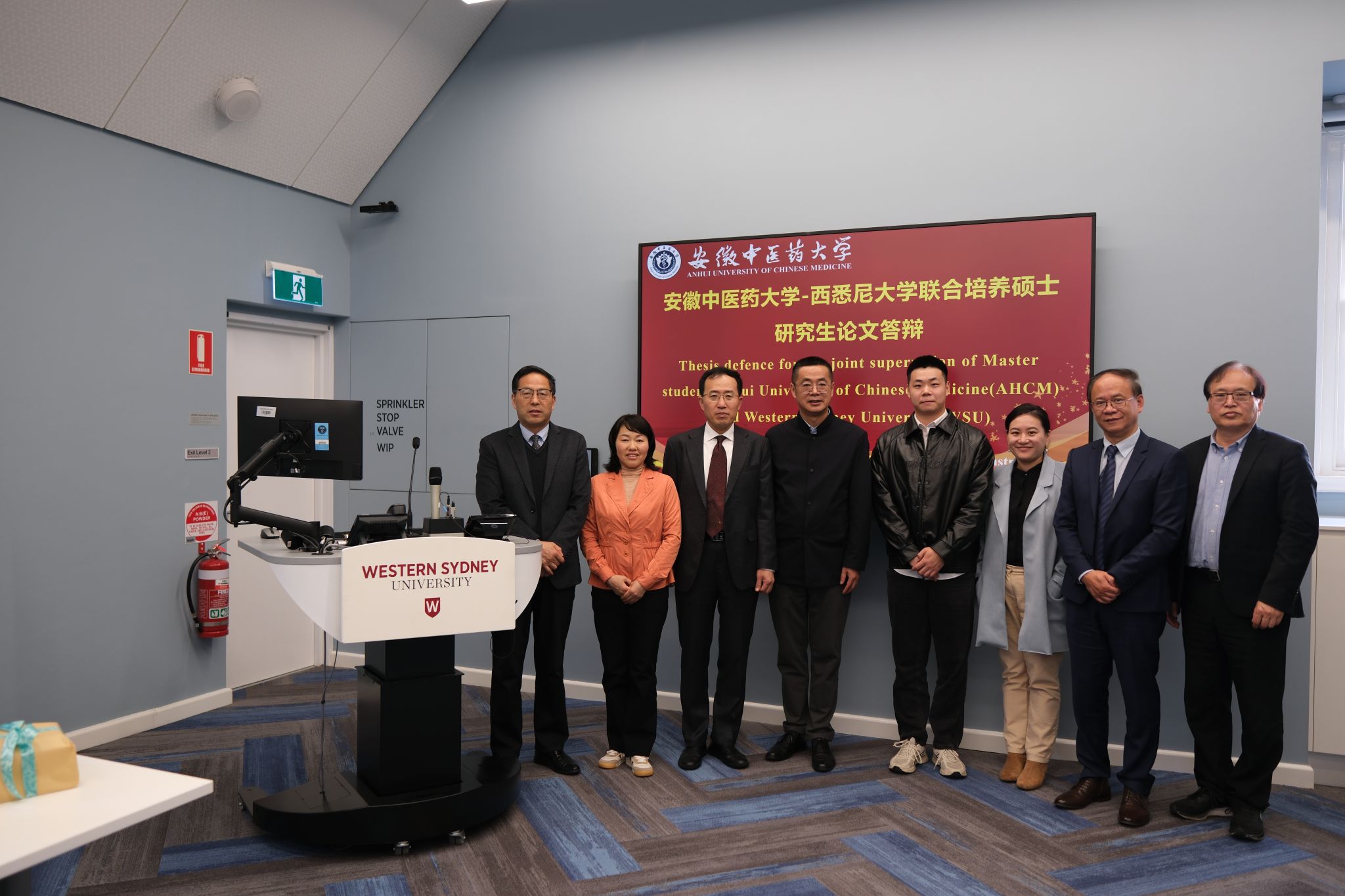 5月1日下午,在西悉尼大学NICM学术交流中心举行了我校中药学学科汪宁教授与西悉尼大学Phoebe Zhou博士两位导师联合培养的2021级中药学硕士研究生李嘉诚同学的毕业论文答辩会。答辩委员会由我校桂双英教授、王鹏教授、周亚东教授及西悉尼大学Dennis Chang教授、李春光教授五位专家组成。李嘉诚同学全过程采用英语方式汇报了自己的研究工作并回答了专家组提出的问题,最终经专家组无计名投票表决顺利通过论文答辩,为自身中外联合培养交流学习划上了圆满句号。