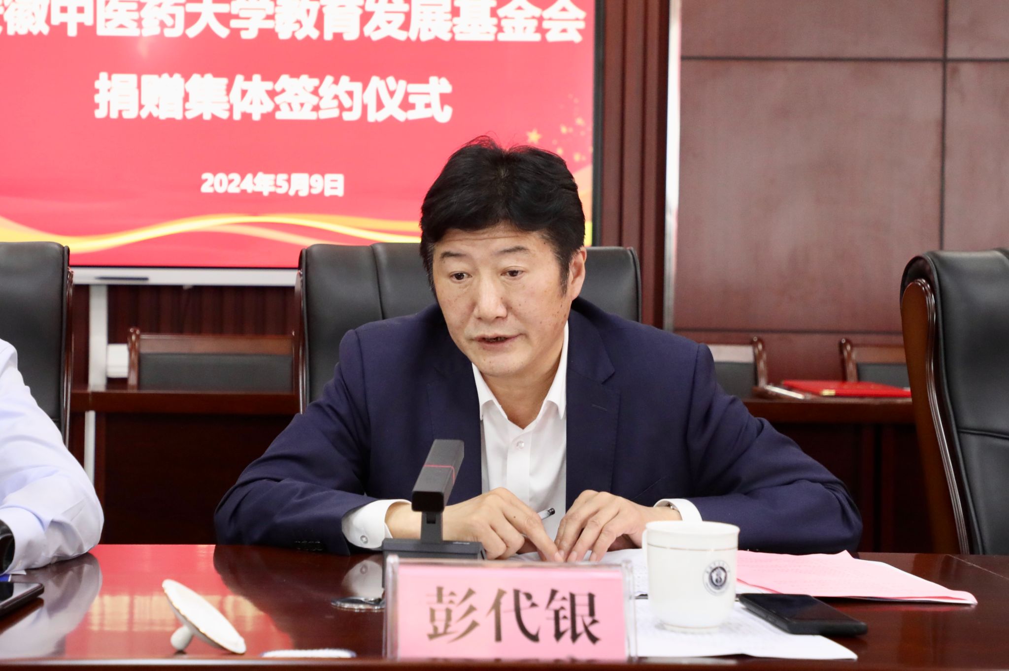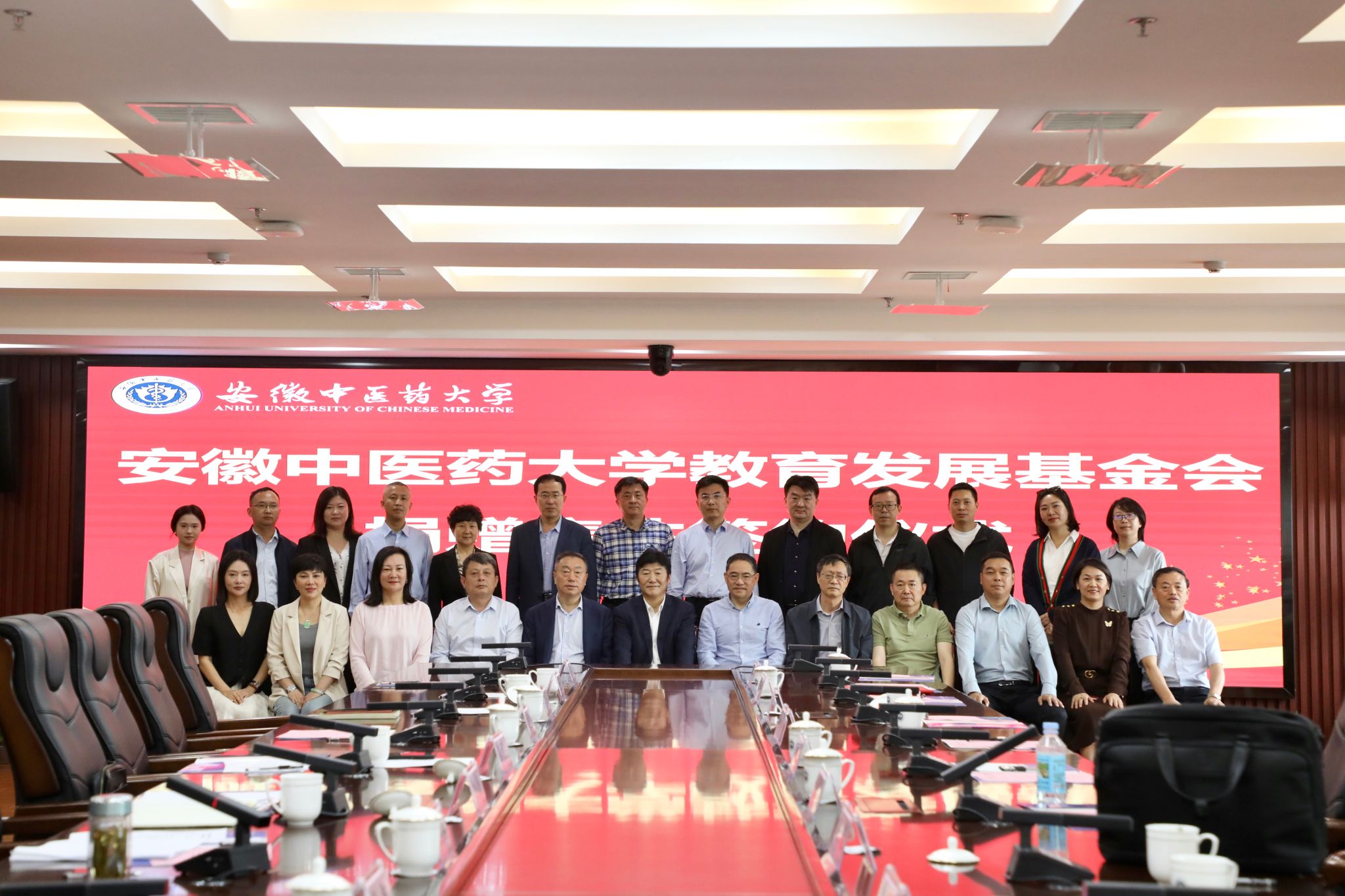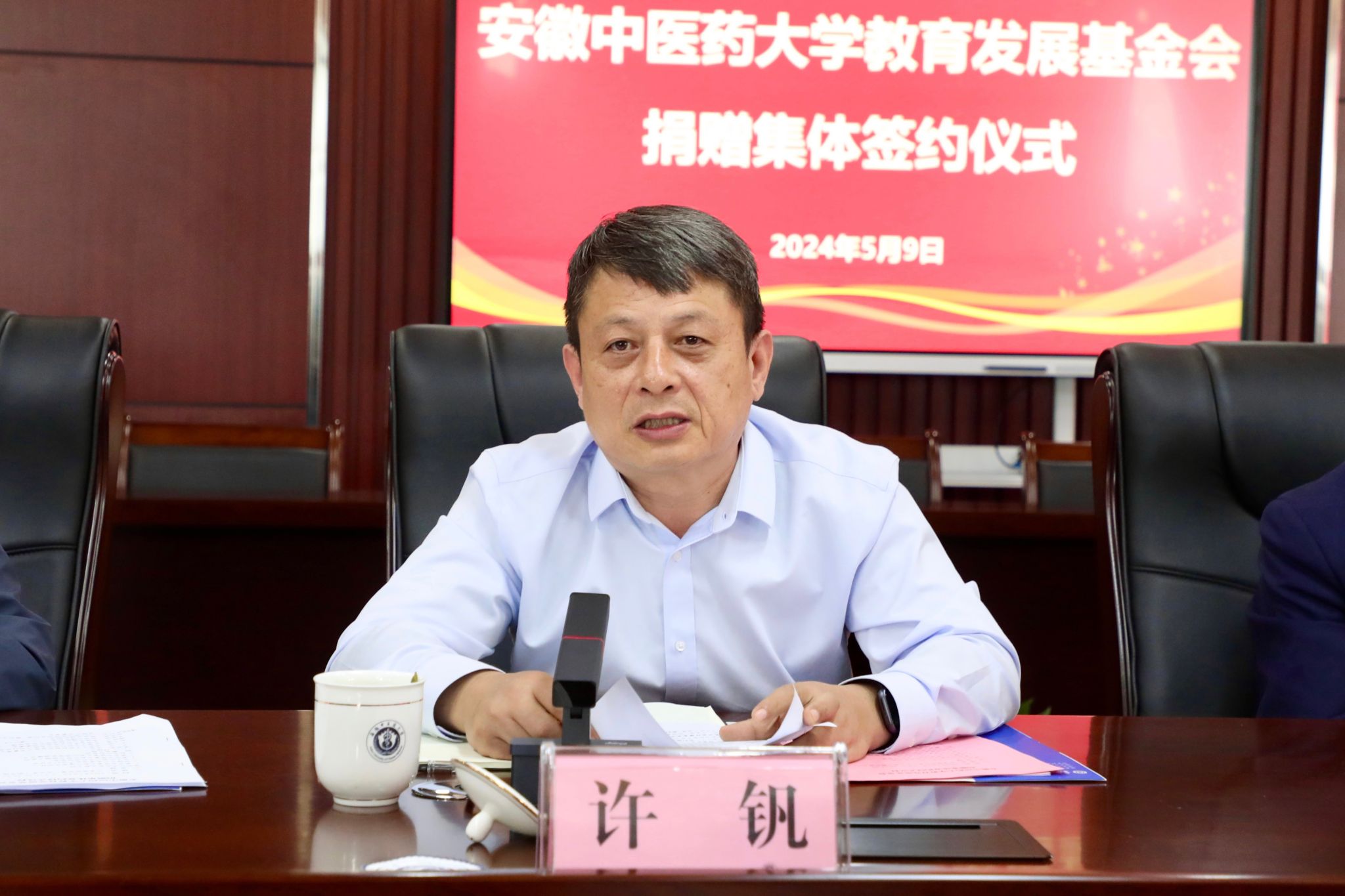 5月9日,校教育发展基金会捐赠集体签约仪式在少荃湖校区举行。捐赠方合肥立方制药股份有限公司、安徽亚泰药业有限公司、合肥慧加医疗科技有限公司、安徽合肥东南外科医院、高球玫瑰队、1997级中医班、立方制药安徽中医药大学校友签约代表,校党委副书记、校长许钒,校教育发展基金会理事长彭代银出席签约仪式。校党政办公室、学生处、财务处、医院事务管理处、研究生院、科技处、基金会秘书处有关人员参加会议。签约仪式由校教育发展基金会副理事长张永群主持。