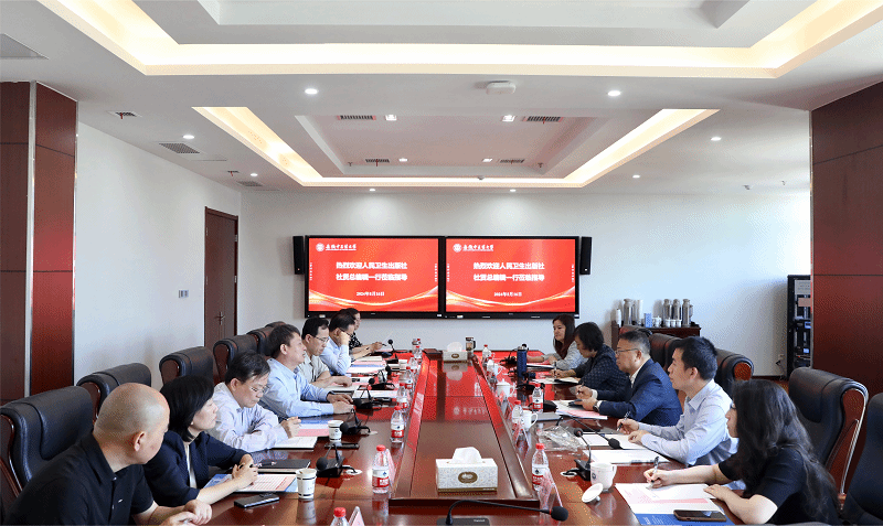 5月16日上午,人民卫生出版社(以下简称人卫社)总编辑杜贤,中医药中心专务李剑光、科普双创编辑工作室主任周宁等一行5人莅临我校开展调研交流活动,会议由学校党委副书记、校长许钒主持,研究生院院长王鹏、中医学院院长方向明、人文与国际教育交流学院院长周亚东,教务处、图书馆和继续教育学院有关负责同志参加会议。