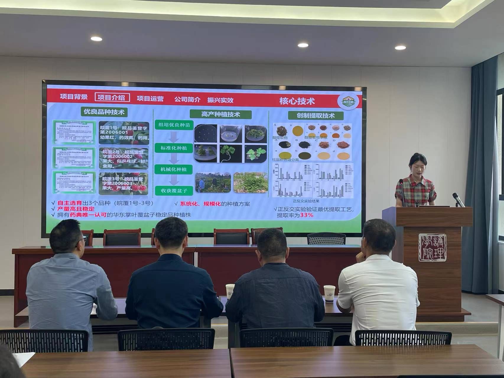 王云生解说了覆盆子与其他草本植物之间、覆盆子果实与叶子之间功效的区别,要求项目汇报增加中医药专业内容,并用故事引入;徐要成从专业性、商业模式、汇报技巧、PPT美化、项目定位对覆盆子项目提出专业化建议;其他与会专家从不同角度给予了指导。