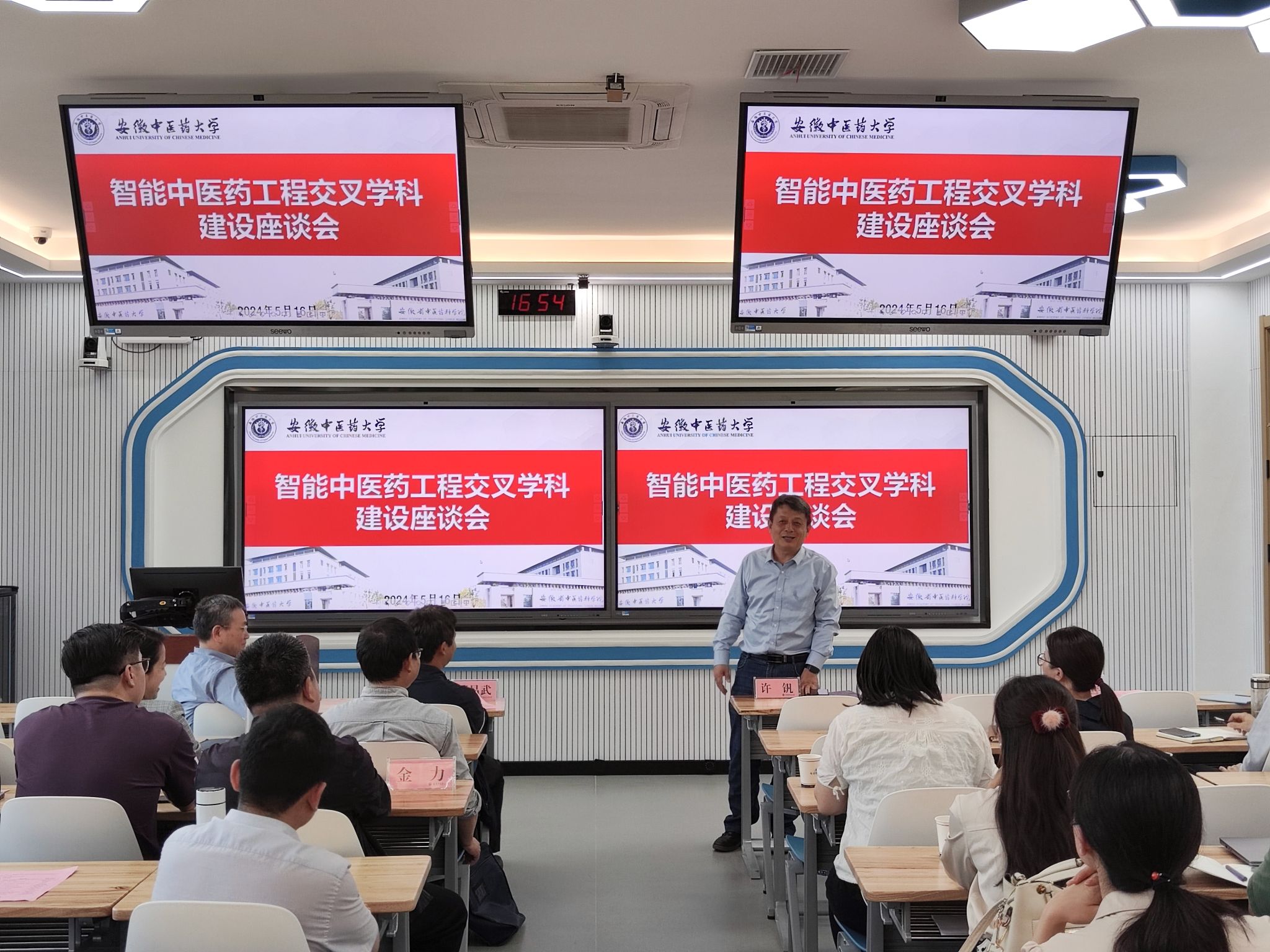 为打破传统学科之间壁垒,推动学科交叉融合,营造学科交叉研究氛围,激发原创性、高质量成果,5月16日下午,学校举办智能中医药工程交叉学科建设座谈会,学校党委副书记、校长许钒出席会议并讲话,发展改革处、教务处、科技处、信息化管理处、医药信息工程学院、第二临床医学院、资产经营有限公司等二级单位负责人,科大讯飞股份有限公司代表、各二级学院教师参加座谈会。座谈会由医药信息工程学院党委副书记、院长阚红星主持。
