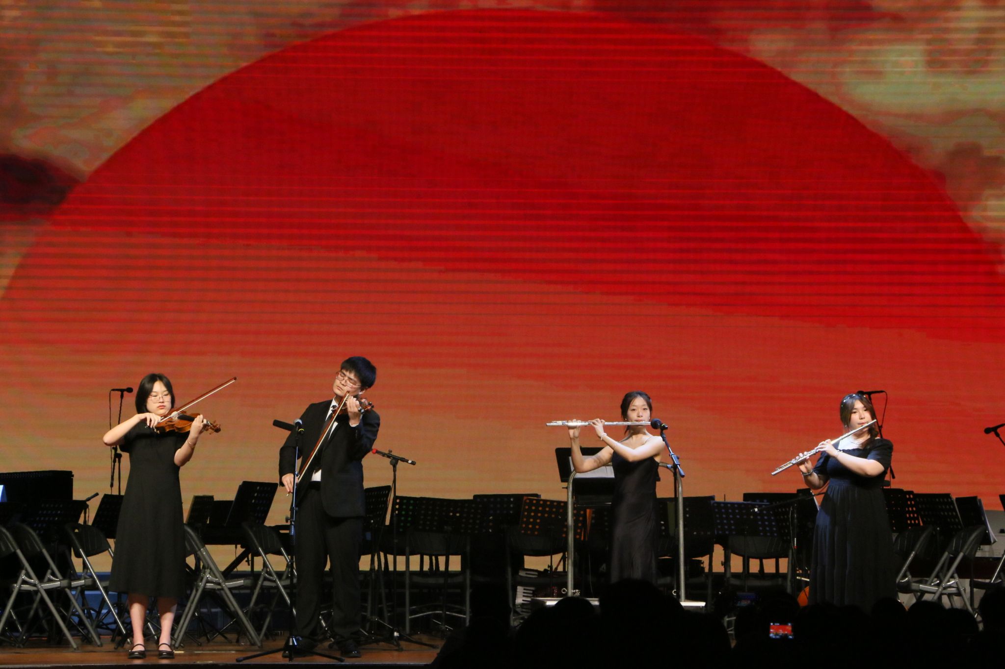 5月18日,“国风雅韵”音乐会用民乐与戏曲的形式弘扬了中国传统文化。《喜洋洋》表达了中国人民在社会主义建设时期的喜悦心情;《二泉映月》旋律含蓄深情,情绪高亢激愤,令人陶醉其中;黄梅戏《仙女四赞》洋溢着朴质和美好;《梨园荟萃》领略戏曲交融之美;由民乐团和戏曲团共同演绎的《十五的月亮为谁圆》《女附马》展现了雄厚的戏曲唱功,激起在场观众阵阵掌声。