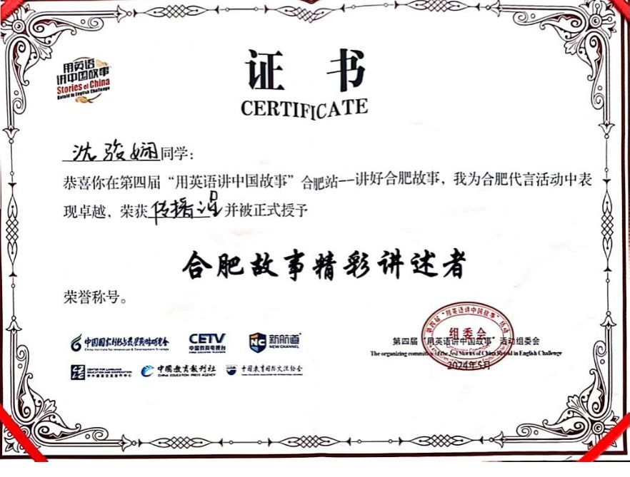 5月25日,由中国国家创新与发展战略研究会、中国教育电视台和新航道国际教育集团联合主办的第四届“用英语讲中国故事”活动合肥站城市展演决赛暨颁奖典礼举行。经过初赛、复赛,来自中国科学技术大学、合肥工业大学、安徽大学等十几所高校选送的26名同学进行了精彩的英语演讲和才艺展示,用流利的英语向世界传递中国故事,展示了合肥的“文里文气”与“科里科气”。