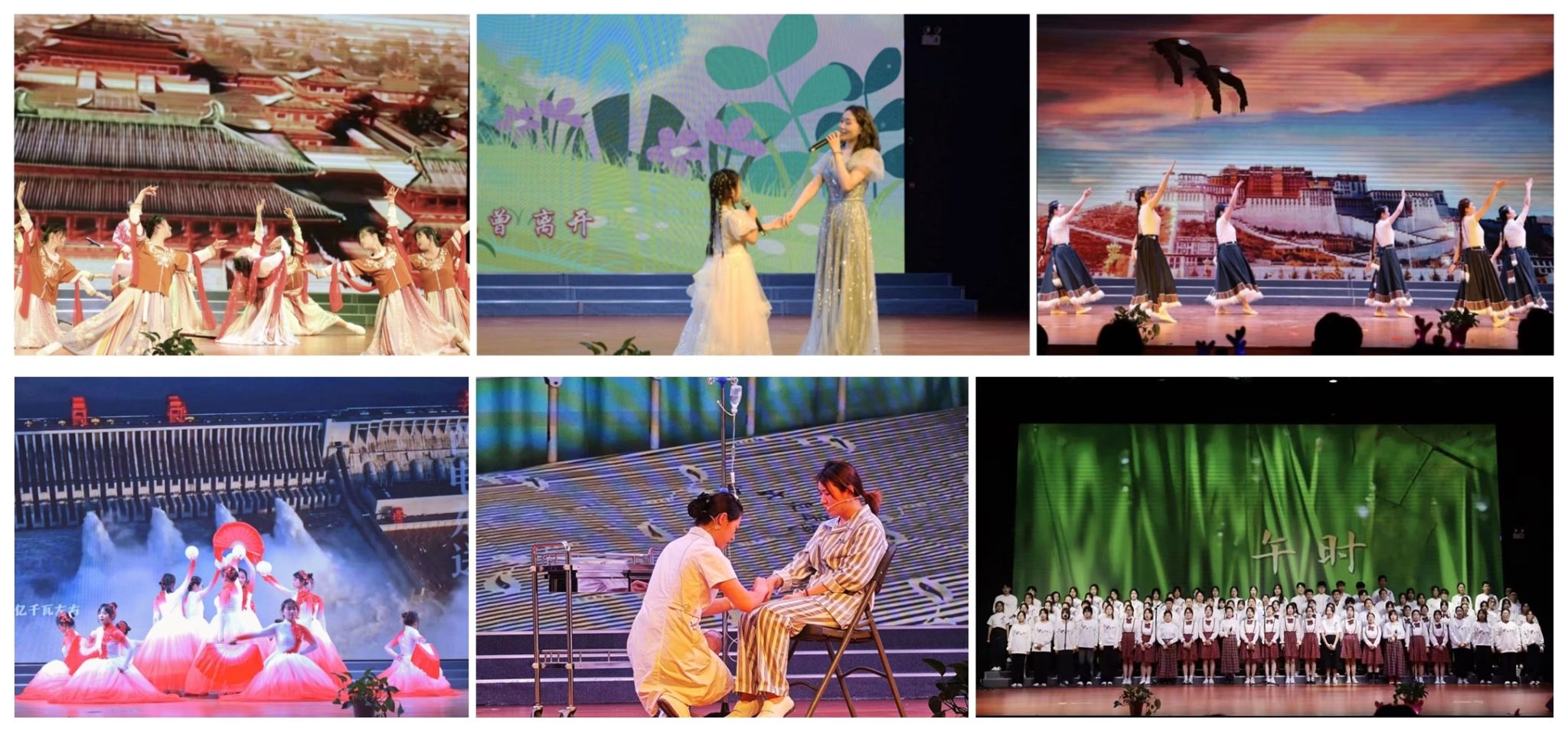 晚会以“天使心向党,逐梦新征程”为主题,分别围绕“忆·岁月芳华”“展·青春韶华”“颂·锦绣中华”三个篇章展开。广大演职人员通过舞蹈、歌曲、情景剧、合唱等方式表达了对伟大祖国的歌颂、对母校的感恩和对未来人生舞台的美好期待。由护理学院老师合唱的《相逢是首歌》《祝你一路顺风》充分表达了母校和学院对广大毕业生的良好祝愿,把晚会气氛推向高潮。