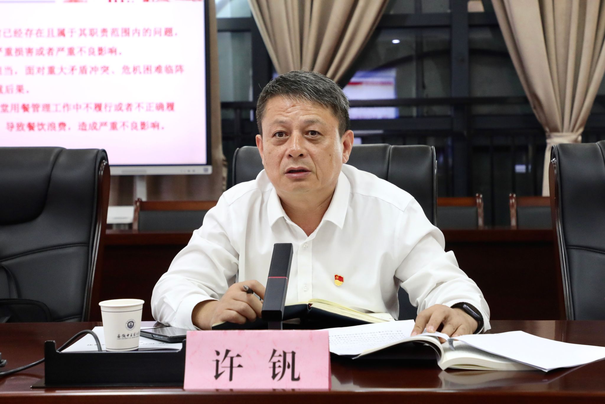 就如何常态化开展党纪学习教育和深入加强党员干部自我教育,许钒要求,一要持续深化学习,始终常怀敬畏党纪的“慎心”。党纪学习教育不是一阵子的“小”事,而是关系每一位党员干部终身的“大”事,党纪学习教育只有“进行时”,没有“完成时”。身为党和人民的干部,要始终敬畏组织、敬畏人民、敬畏法纪,永葆共产党人的政治本色。二要把学习成果转化为工作动力,始终坚定为师生服务的“初心”。要巩固拓展党纪学习教育成果,为推动学校“双一流”建设和高质量发展攻坚克难,切实担当作为,积极履职尽责,及时回应和解决广大师生医护员工的急难愁盼,推动学校改革和事业发展取得新成就。三要严格遵守党纪法规,始终做到纯洁干净的“衷心”。各级党委要切实扛起政治责任,坚持“两手抓、两促进”的工作思路,将开展党纪学习教育同贯彻落实习近平总书记关于高等教育、中医药工作的重要论述和重要指示批示精神结合起来,同做好省委新一轮巡视整改“后半篇”文章结合起来,自觉接受党和人民的督促监督,以实际行动、事业成就、改革发展成果诠释党员干部的尽忠职守和高尚情操。