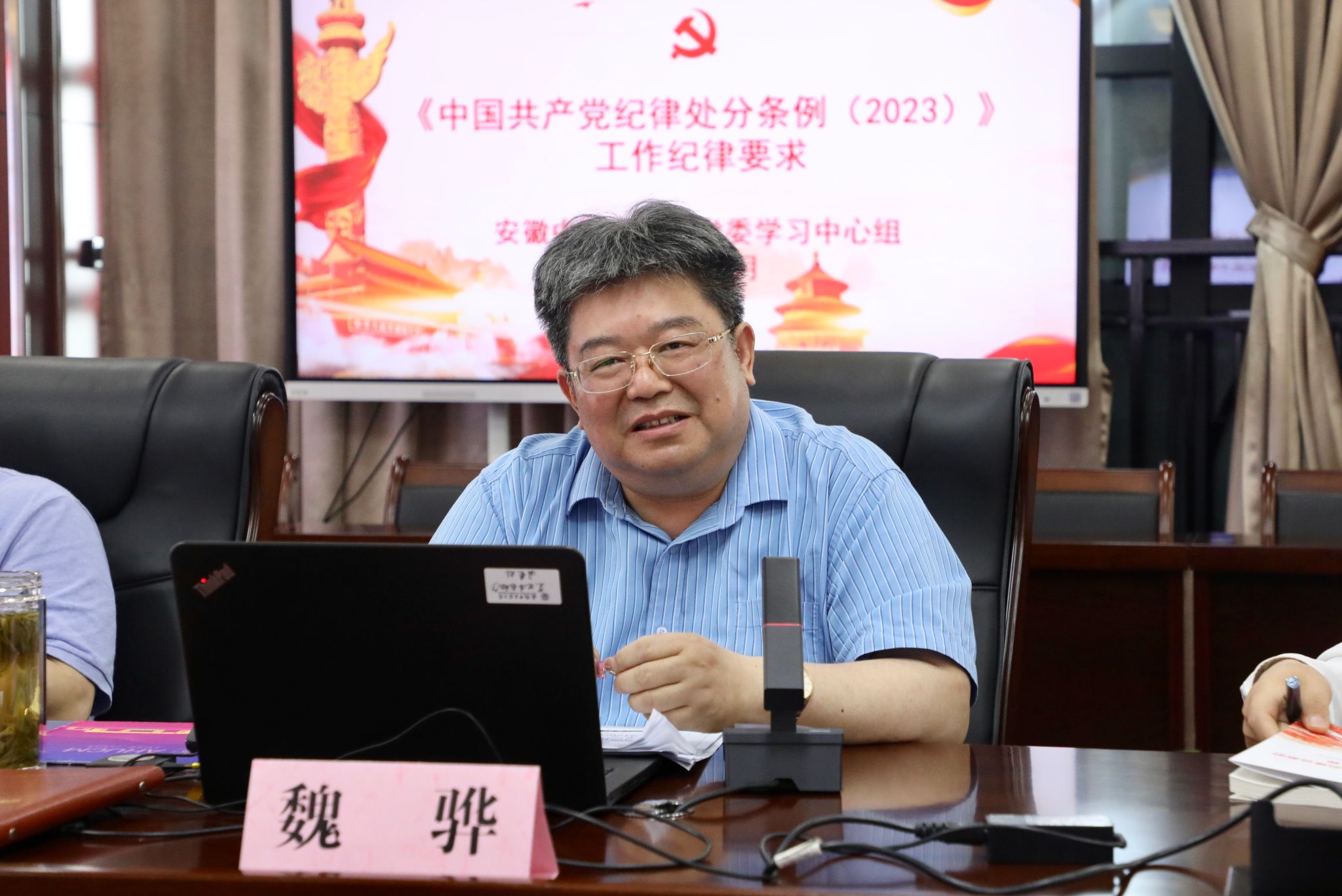 党委常委、副校长魏骅导读、领学了《中国共产党纪律处分条例》第十章对违反工作纪律行为的处分(130-149条),从党的工作纪律在《条例》中的位置、党史上的工作纪律建设和工作纪律“负面清单”等三个方面,结合党纪党史和工作实际,详细解读了有关条例精神。