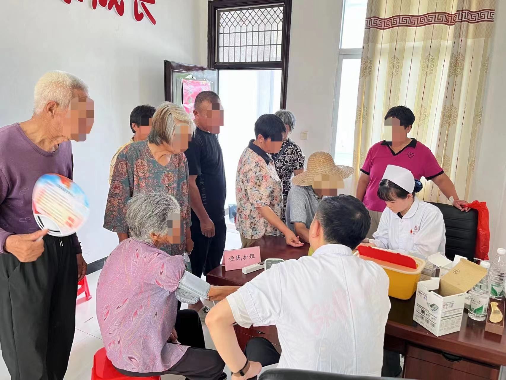 义诊活动现场,来自曙光安徽医院康复科、骨科、脑病科及中医特色护理团队的医护专家为前来参加义诊的村民提供中医养生,呼吸道疾病、老年病等慢性病的预防与治疗指导,提供耳穴埋豆、刮痧等中医特色诊疗服务。