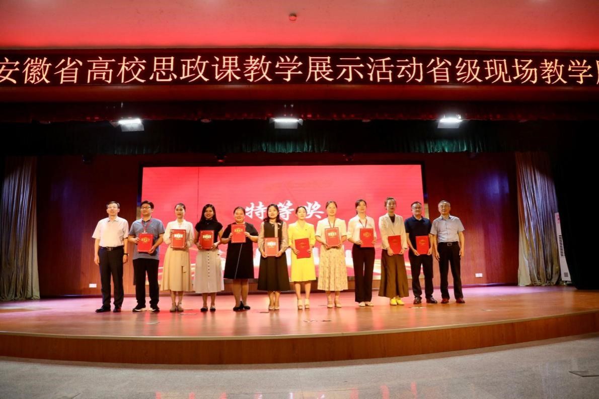 8月7日至8日,由中共安徽省委教育工委、安徽省教育厅主办,安徽省高校思想政治理论课教学指导委员会、安徽中医药大学承办的2024年度全省高校思想政治理论课教学展示活动省级现场教学展示在我校举行。我校马克思主义学院4位老师入选省级现场教学展示,经过激烈的角逐,项银霞老师获“思想道德与法治”(本科组)教学展示特等奖;陶春丽老师获“中国马克思主义与当代”(研究生组)二等奖,沈跃龙老师获“马克思主义基本原理”(本科组)二等奖,董琪老师获“形势与政策”(本科组)三等奖。