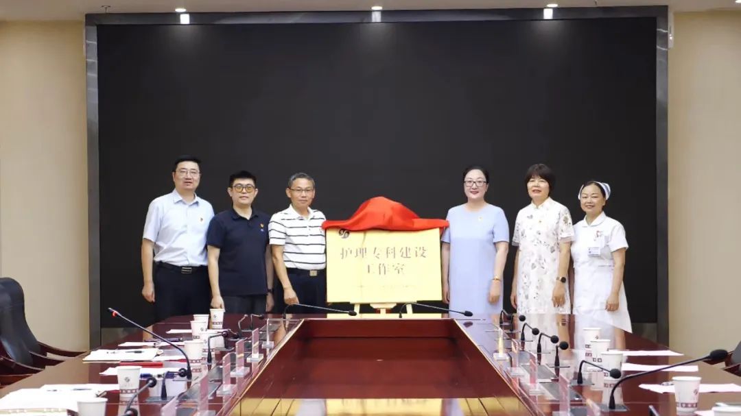 栾伟、赵红、翟从永、张晓峰、周振华、林青共同为“护理专科建设工作室”揭牌。