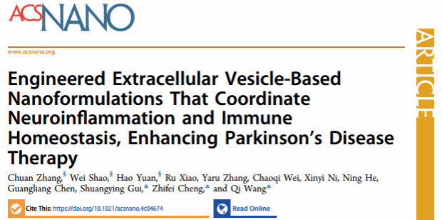 Engineered Extracellular Vesicle-Based Nanoformulations That Coordinate Neuroinflammation and Immune Homeostasis, Enhancing Parkinson's Disease Therapy. ACS Nano. 2024 Aug 15. doi: 10.1021/acsnano.4c04674.