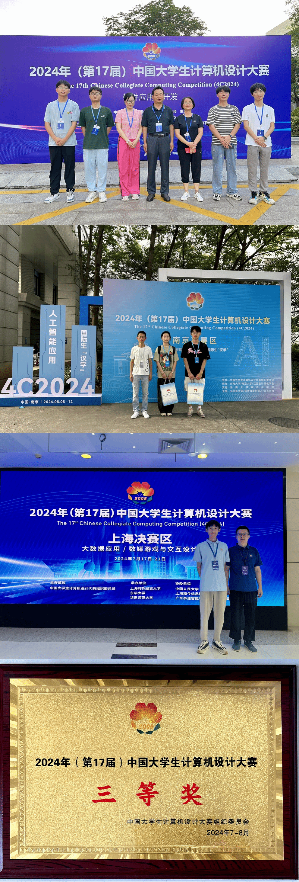 近日,第17届中国大学生计算机设计大赛全国总决赛落下帷幕。我校医药信息工程学院选拔4支队伍奔赴上海对外经贸大学、东南大学、山东大学参加总决赛。总决赛上,学子们自信展示、沉着答辩,最终4支队伍均荣获全国三等奖。