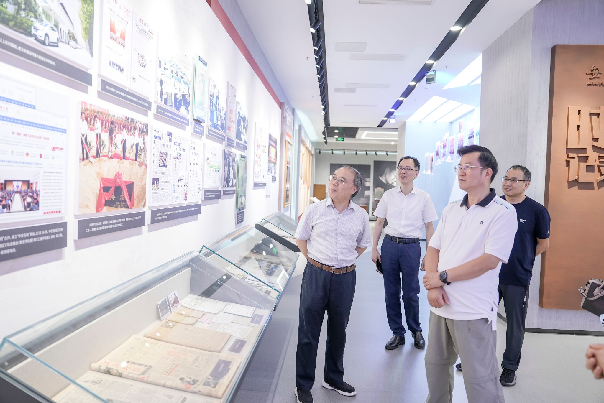 在习近平总书记对宣传文化思想工作作出重要指示一周年到来之际,罗绍明率党委宣传部(新闻中心)负责同志来到安徽日报报业集团,安徽日报社党委副书记、总编辑邵晓晖热情接待了罗绍明一行,并在“报史展览馆”介绍了《安徽日报》的发展光辉历程。罗绍明重点介绍了学校学习贯彻习近平总书记关于中医药的重要论述,开展“振兴中医药,建设‘双一流’”所取得的阶段性成效以及大学附属医院高质量推进国家中医区域中心建设的情况。邵晓晖表示,将巩固既往良好合作基础,一如既往支持中医药大学改革建设发展,进一步利用党报党刊的强大优势、现代传媒先进的平台技术,传播好安徽中医药故事,共同服务和满足人民群众中医药需求,助力建设健康安徽。