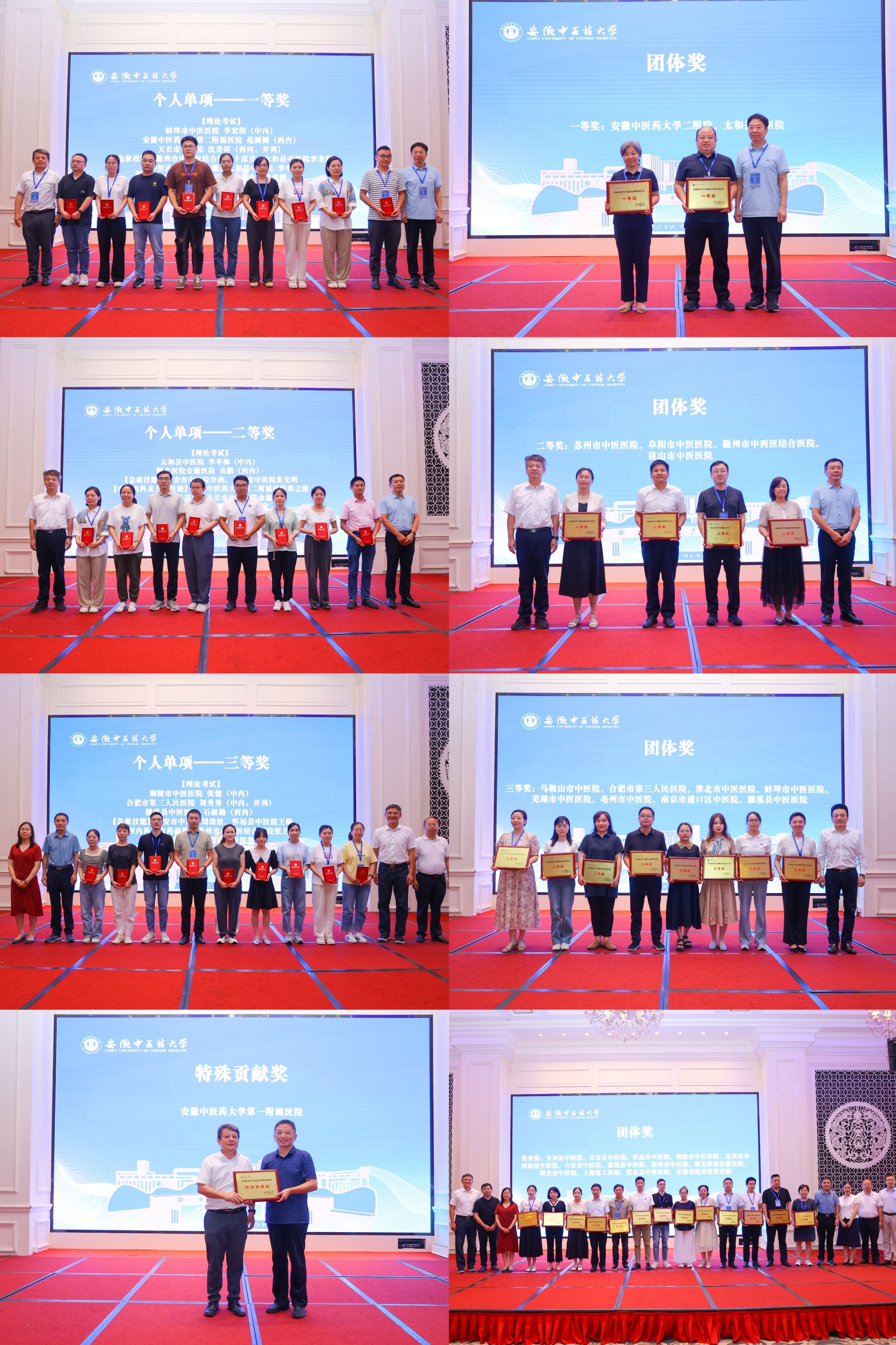 安徽中医药大学二附院、太和县中医院获得团体一等奖;苏州市中医医院、阜阳市中医医院、滁州市中西医结合医院、昆山市中医医院获得团体二等奖;马鞍山市中医院、合肥市第三人民医院、淮北市中医医院、蚌埠市中医医院、芜湖市中医医院、亳州市中医院、南京市浦口区中医院、濉溪县中医医院获得团体三等奖;23名参赛选手获得个人单项奖,安徽中医药大学第一附属医院获得特殊贡献奖。