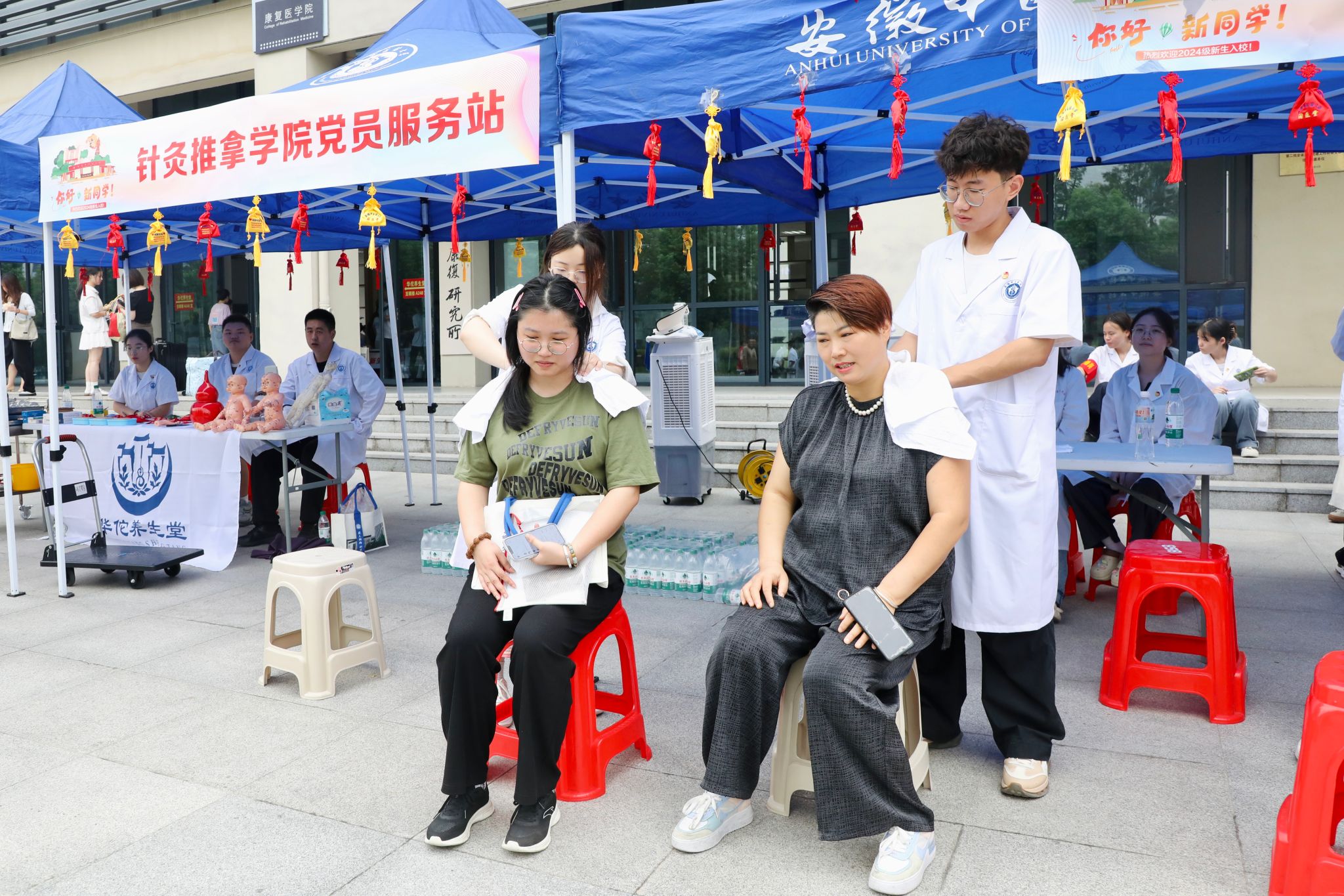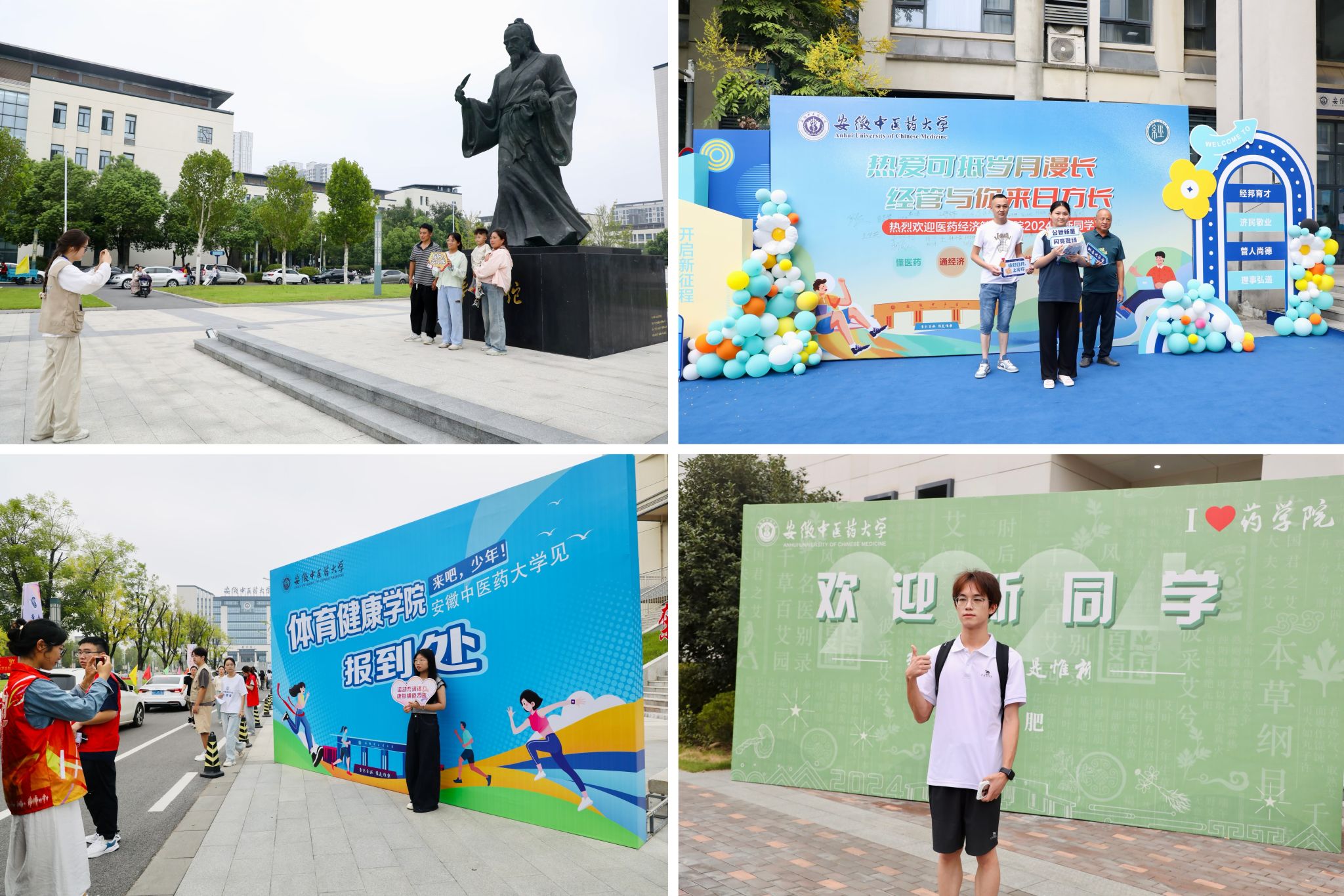 各学院根据自身学科特色、学院文化特点,纷纷设计了别出心裁、创意十足的迎新活动,用热情与真诚迎接新同学。第一临床医学院为新生准备的盆栽花卉令人赏心悦目,针灸推拿学院让家长和学生一进校就体验推、拿、提、捏、揉的神奇功效,中西医结合学院为“萌新”们提供定制花茶,药学院为当天过生日的同学献上鲜花和蛋糕,医药信息工程学院的独轮组智能车吸引同学们驻足观看,医药经济管理学院布置的展板上同学们纷纷签名留念,护理学院制作了花式点心让人甜到心头,人文与国际教育交流学院展示了精湛的泡茶技艺,体育健康学院的志愿者手持运动康复标语牌喊出青春誓言。