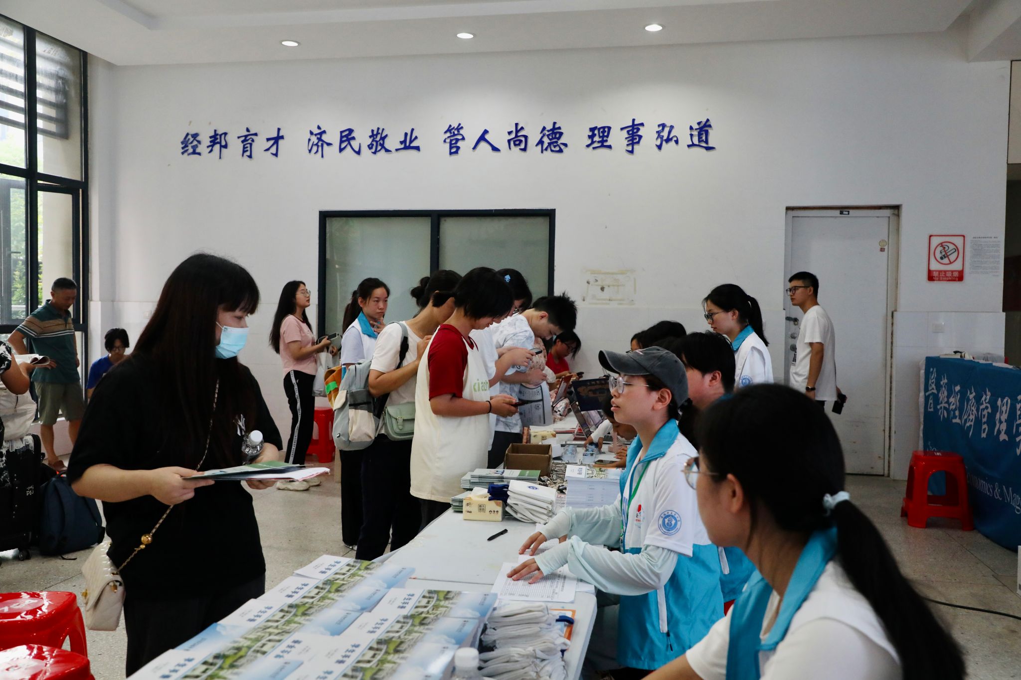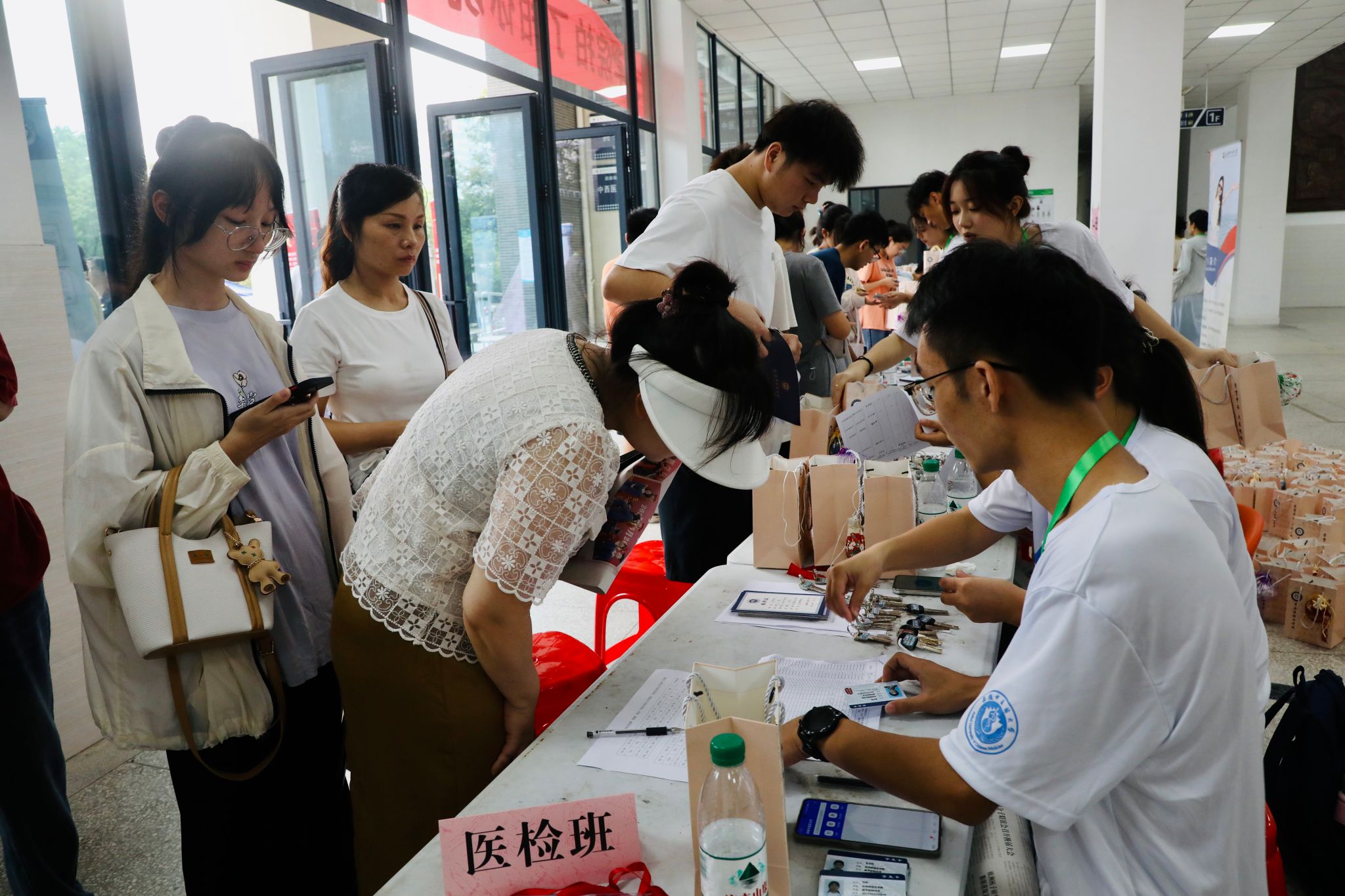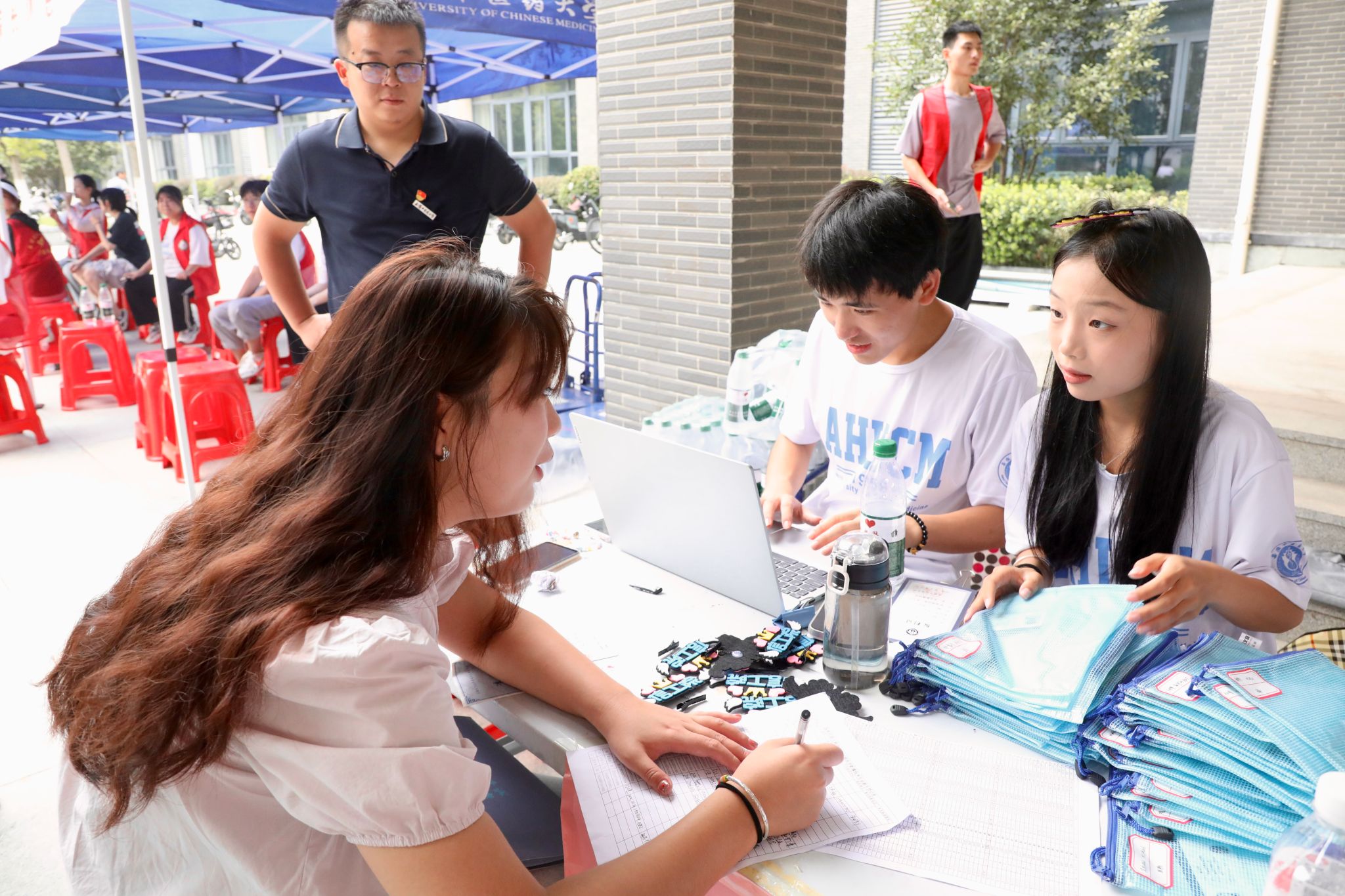为做好迎新工作,学校多部门联动、提前部署,采取多项措施,保障迎新工作顺利进行。在合肥火车站、合肥南站,学校设立了接驳车,提供便捷的接站服务;校园内设立专门区域供家长停车,方便家长陪同新生进入校园;学校还集中设置了迎新总咨询服务台、征兵咨询服务台、大学生“一站式”岐黄社区、绿色通道等11个服务点,为新生及家长答疑解惑;身穿红马甲的志愿者们帮助新生搬运行李、提供服务。连日高温,学校及时调整简化入学报到流程,并设立了多个防暑纳凉区提供免费茶饮,让新生和家长消暑解渴。