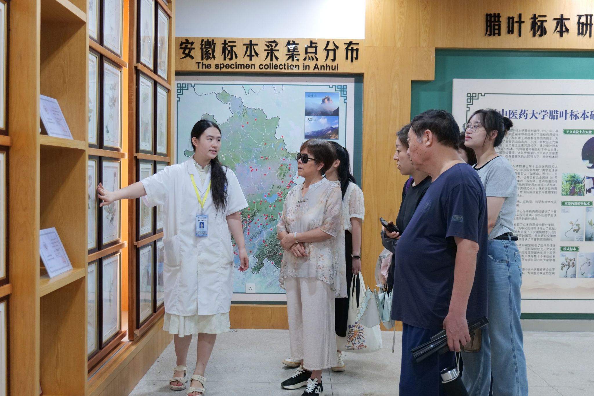 活动设置场馆参观、手工制作、座谈会等多个环节。在师生讲解员的带领下,辅导员家属们实地参观了校史馆、新安医学文化馆、图书馆古籍部,通过珍贵的历史照片、实物展品和详尽的文字介绍,全面了解学校的发展历程、新安医学的博大精深以及中医药古籍的制作保护之路;在中药资源中心,家属们对各种中药的形态、味道和功效充满好奇,他们侧耳聆听,近距离、沉浸式感受中药的独特魅力;在AI体验馆,一同体会智能中医药的发展。手工制作环节,辅导员与家属们共同制作中药香囊,体验有趣的文化活动。