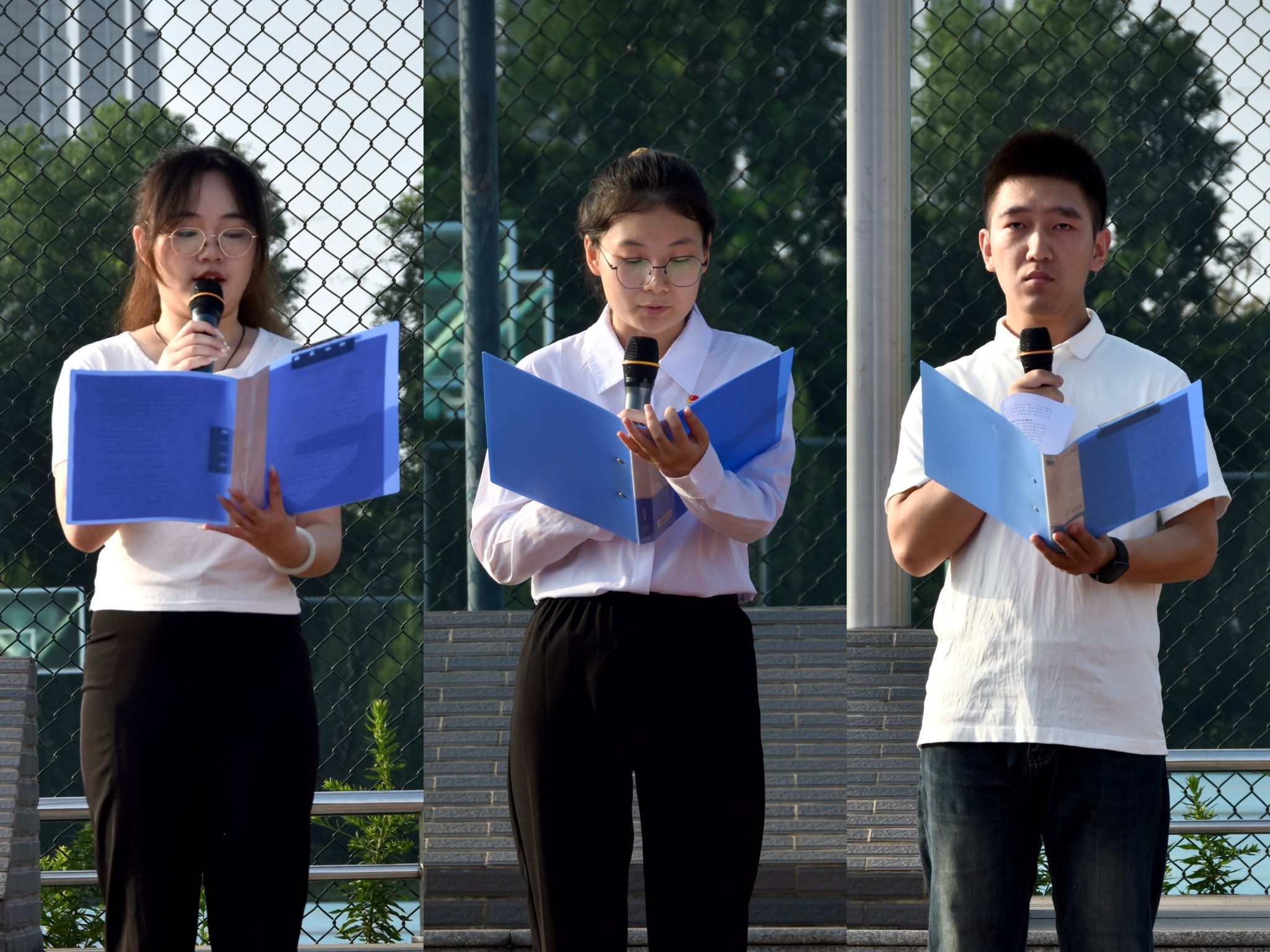 历史是最好的教科书,英雄是最亮的坐标。校学生会和青年素质拓展中心湛馥榕、王越两位同学分别向大家宣讲了黄公略烈士和“沂蒙红嫂”李桂芳的英雄事迹,硕士研究生方虎强在国旗下进行了《担当奉献铸家国情怀,青春奋斗绘时代新篇》的励志演讲,号召全体新生以昂扬拼搏的斗志、坚定的理想信念,开启新学期新篇章,用饱满的热情、积极的态度、优异的成绩向中华人民共和国成立75周年献礼。党员付挺远、团员茅敏琪分别领誓,带领大家重温入党誓词、入团誓词。