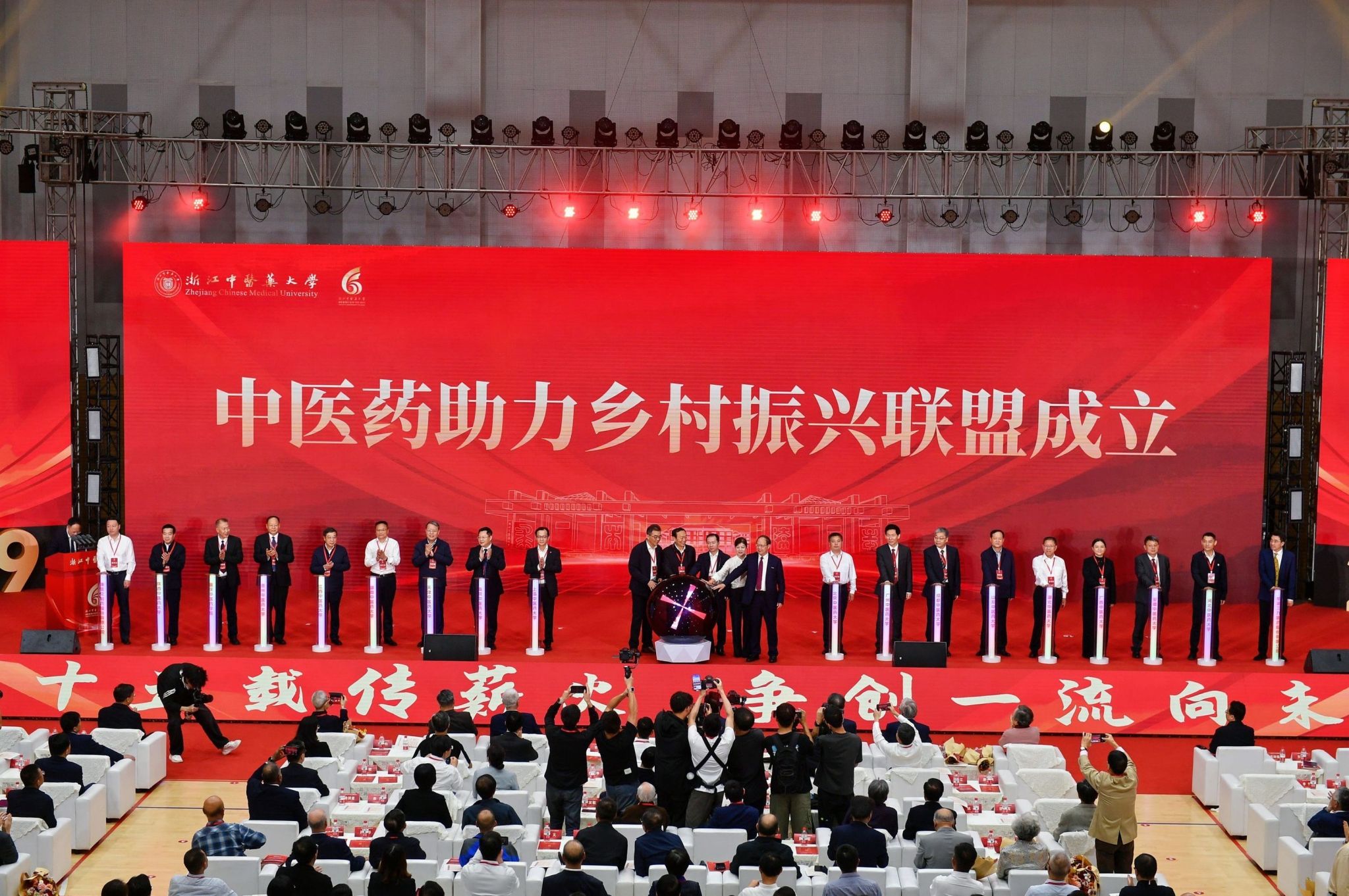 为更好发挥中医药在乡村全面振兴战略中的独特作用,浙江中医药大学联合全国中医药院校及相关高校、科研院所,企业、行业团体,以及地方政府部门等50余家单位,共同发起成立了“中医药助力乡村振兴联盟”。10月19日,联盟成立仪式在浙江中医药大学举行。原国务院扶贫开发领导小组办公室主任司树杰、浙江省教育厅总督学陈仁坚、浙江省农业农村厅党组成员、副厅长杨大海、浙江省卫生健康委员会副主任徐旭卿以及联盟理事会成员代表共同见证联盟成立,我校党委副书记、校长许钒作为联盟启动嘉宾受邀出席此次活动。