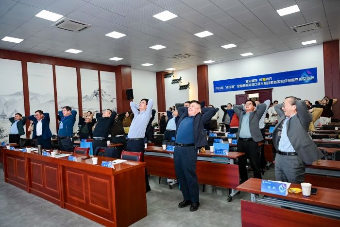 大会特邀陈红斌及我校针灸推拿学院院长唐巍在学术交流会上做专题报告。陈红斌以《通用人工智能助力高校教育数字化转型的实践与探索》为题,分享人工智能在高校教育数字化转型中的运用。唐巍以《中医导引智慧与健康》为题,介绍了中医导引在养生中的重要作用并对八段锦、古本易筋经十二势导引法进行了现场演示和教学,活跃了会场气氛。