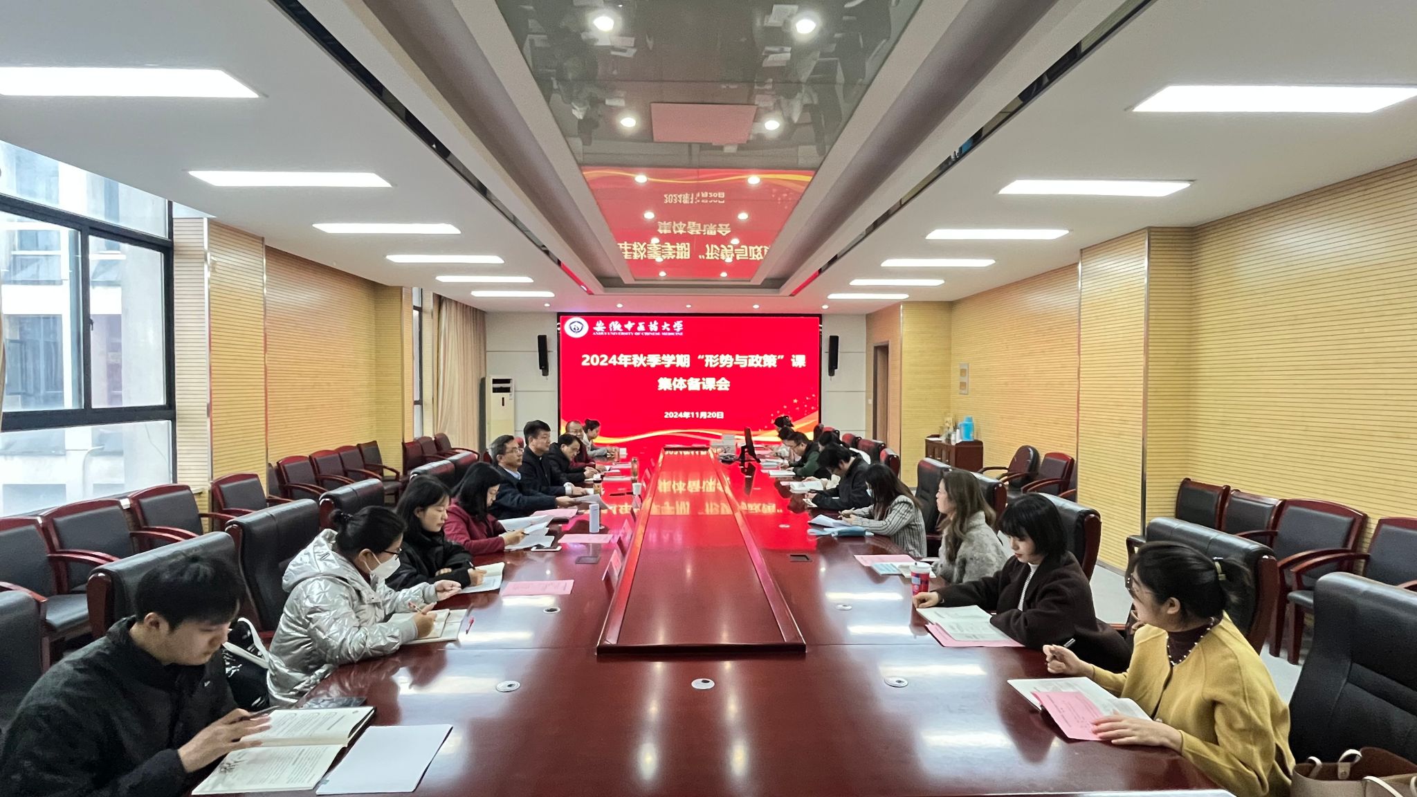 为深入学习贯彻党的二十大和二十届三中全会精神,第一时间推动党的创新理论成果进教材进课堂进学生头脑,引导大学生准确理解党的基本理论、基本路线、基本方略,切实提高“形势与政策”课教育教学效果,根据《关于做好2024年秋季学期全国高校“形势与政策”教学工作的通知》精神,11月20日上午,学校召开2024年秋季学期“形势与政策”课集体备课会。学校党委常委、副校长聂久胜教授,马克思主义学院班子成员,“形势与政策”课专兼课教师参加集体备课会。