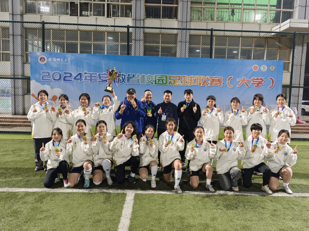 我校女子足球队一路拼搏、过关斩将,以小组第一出线。淘汰赛阶段竞争加剧,半决赛和决赛更是遭遇对手顽强阻击,凭着球队的实力和拼搏的精神,最终涉险过关,7天5战,常规时间“零”失球全部战胜对手,成功夺得女子甲组冠军,这也是我校在安徽省校园足球联赛(大学)中取得的最好成绩。