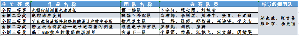 第十届全国大学生物理实验竞赛(创新)获奖作品情况表
