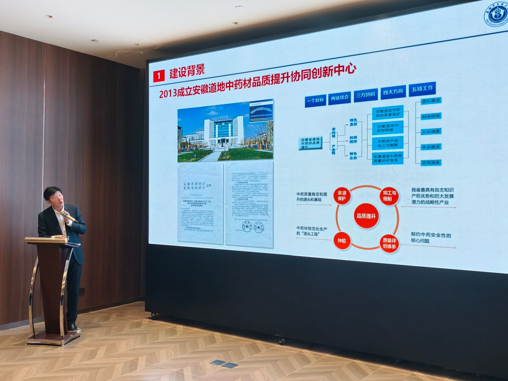 许钒校长在致辞中指出,安徽素有“药材之乡”之称,是中药资源的重要省份。为了回应中医药传承创新发展的国家需求,提升中药材质量,促进安徽从中药资源大省向中药产业强省的转型,两个中心的应运而生。他强调,这些中心不仅要在道地中药材品质提升方面深入研究,以优化种植和加工技术为目标,完善质量评价体系,还要在中药的开发利用上通过产学研合作创新中药新产品研发路径,提升产业化和品牌竞争力。同时,他对与会的中医药领域顶尖专家和学者们表示热烈欢迎和衷心感谢,并期待各位专家的智慧能够为中药领域的可持续发展提供创新驱动,推动形成实用价值的研究成果。