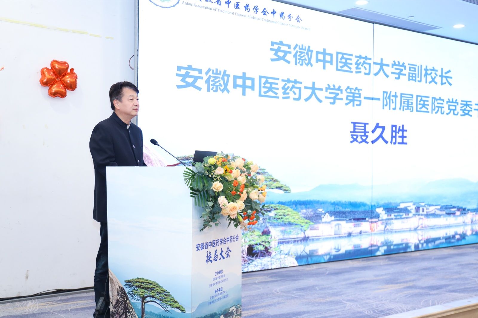 学校党委常委、副校长、院党委书记聂久胜,安徽省中医药管理局副局长、安徽省中医药学会副理事长兼秘书长张帮友、副秘书长蒋宏杰等领导出席换届大会。会议由蒋宏杰主持。
