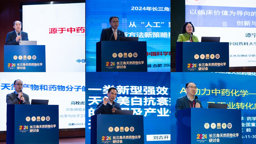 会议邀请了海军军医大学现代中药研究中心主任张卫东教授,中国科学院上海药物研究所党委副书记、副所长叶阳研究员,中国药科大学谭宁华教授,华东师范大学高栓虎教授,安徽中医药大学刘吉开研究员,浙江大学王毅教授等以国家杰青、优青、万人领军为代表的25名长三角地区中药与天然药物化学研究领域知名专家及青年学者,就中药创新药物发现策略、人工智能助力中药化学-生物分析、天然药有效成分生物合成、结构修饰、作用机制以及创新药物研发等等多个角度作了精彩的学术报告。我校刘吉开研究员应邀作题为“一类新型强效天然美⽩抗衰剂的发现及产业化开发”的学术报告,解松子副教授在青年论坛上分享了“中药多糖的分离纯化,结构鉴定及功效作⽤研究-以霍⼭⽯斛,⻩精为例”的最新研究成果。