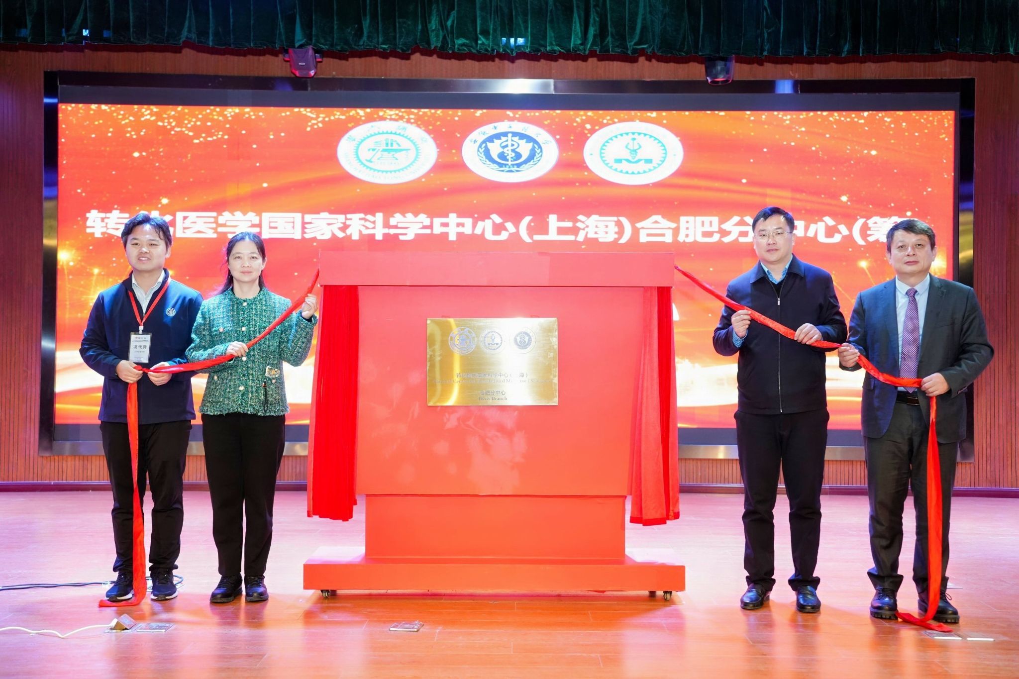 近日,转化医学国家科学中心(上海)合肥分中心(筹)揭牌仪式在安徽中医药大学少荃湖校区顺利举行。我校党委副书记、校长许钒,合肥新站高新区党工委委员、管委会副主任傅壮,上海交通大学大健康专项办公室副主任李冬凉和上海交通大学特聘教授、离子诊疗技术联合研发中心主任凌代舜共同揭牌。